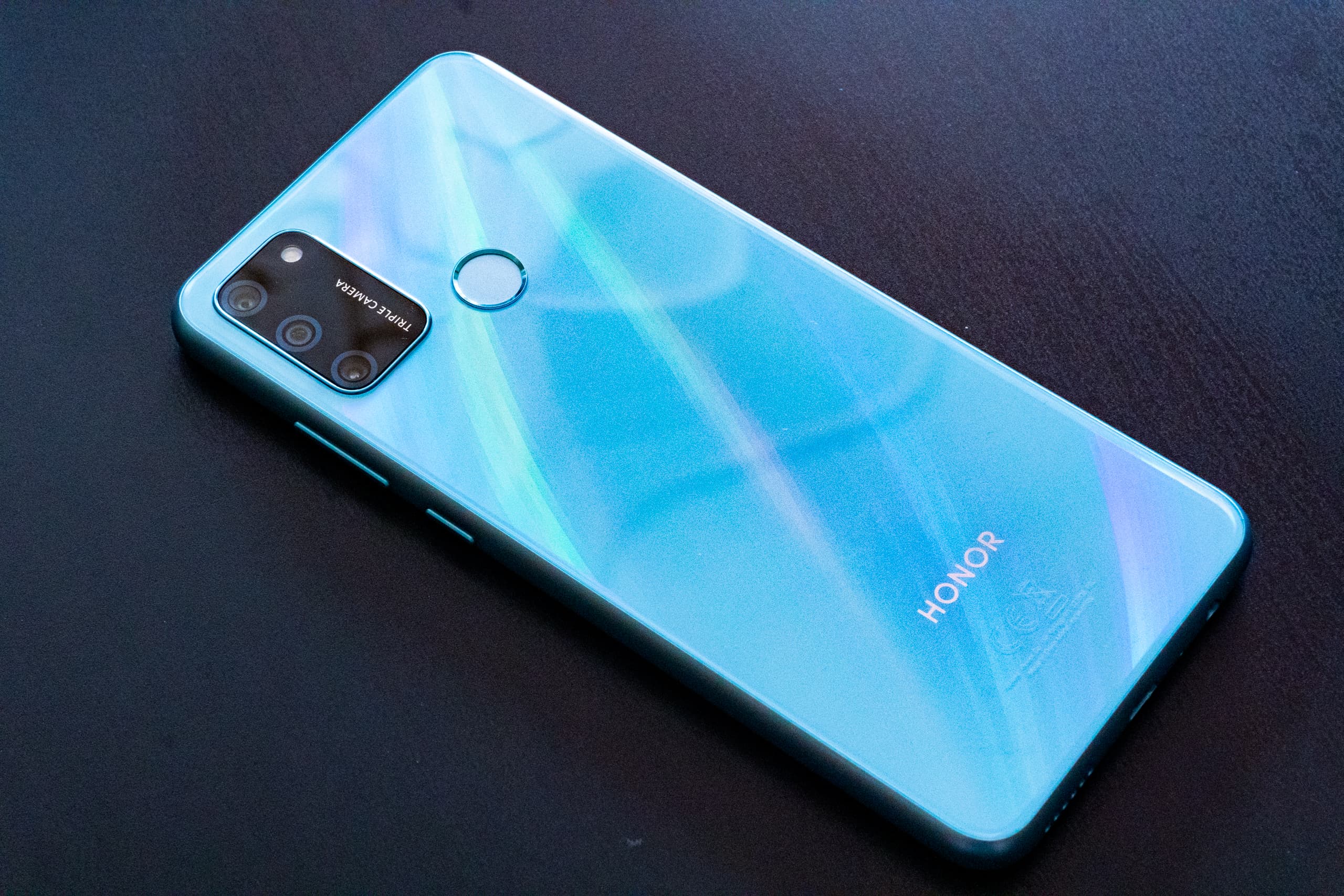 Это устройство постарше, и с первого взгляда заметны три вещи, которые его выделяют. Спереди — большой 6,3-дюймовый безрамочный экран, сзади — панель с красивым голографическим рисунком (такие Honor раньше ставил в модели подороже; но есть чёрный строгий вариант без «переливашек») и тройная камера.