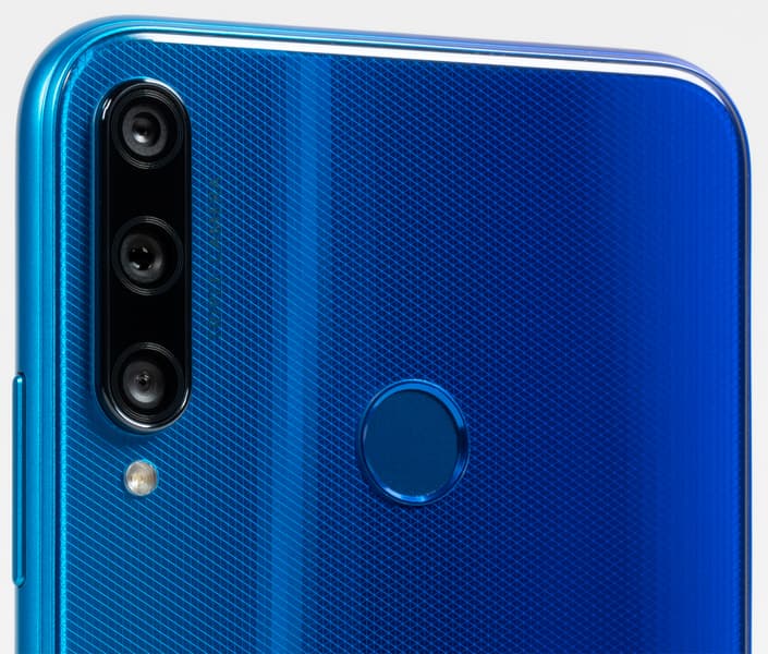 Honor 9C бывает двух цветов: голубой и «полночный черный» — и в обоих вариантах задняя панель имеет красивую голографическую текстуру.