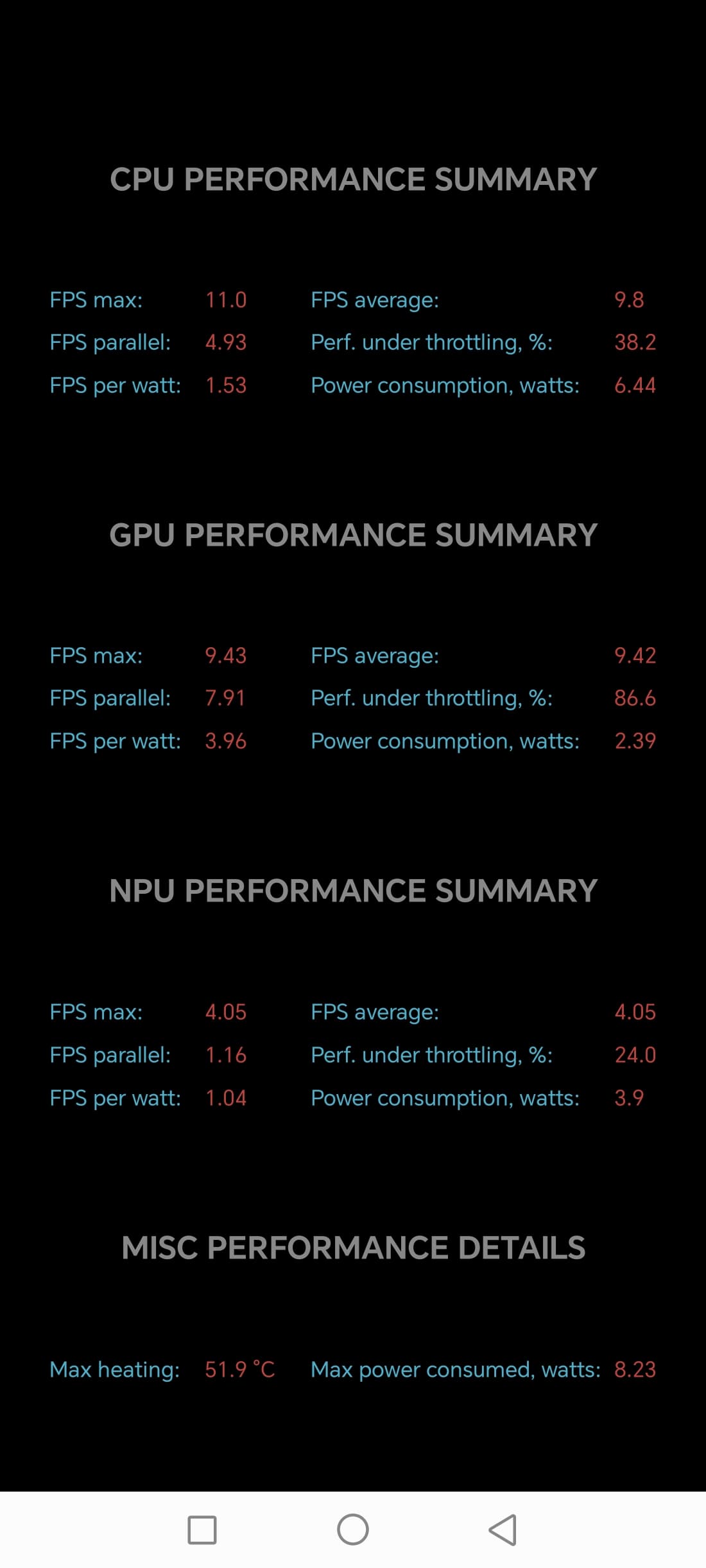 Тест на снижение производительности при нагреве мы проводим с помощью программы Burnout Benchmark, которая позволяет нагружать CPU, GPU и NPU: