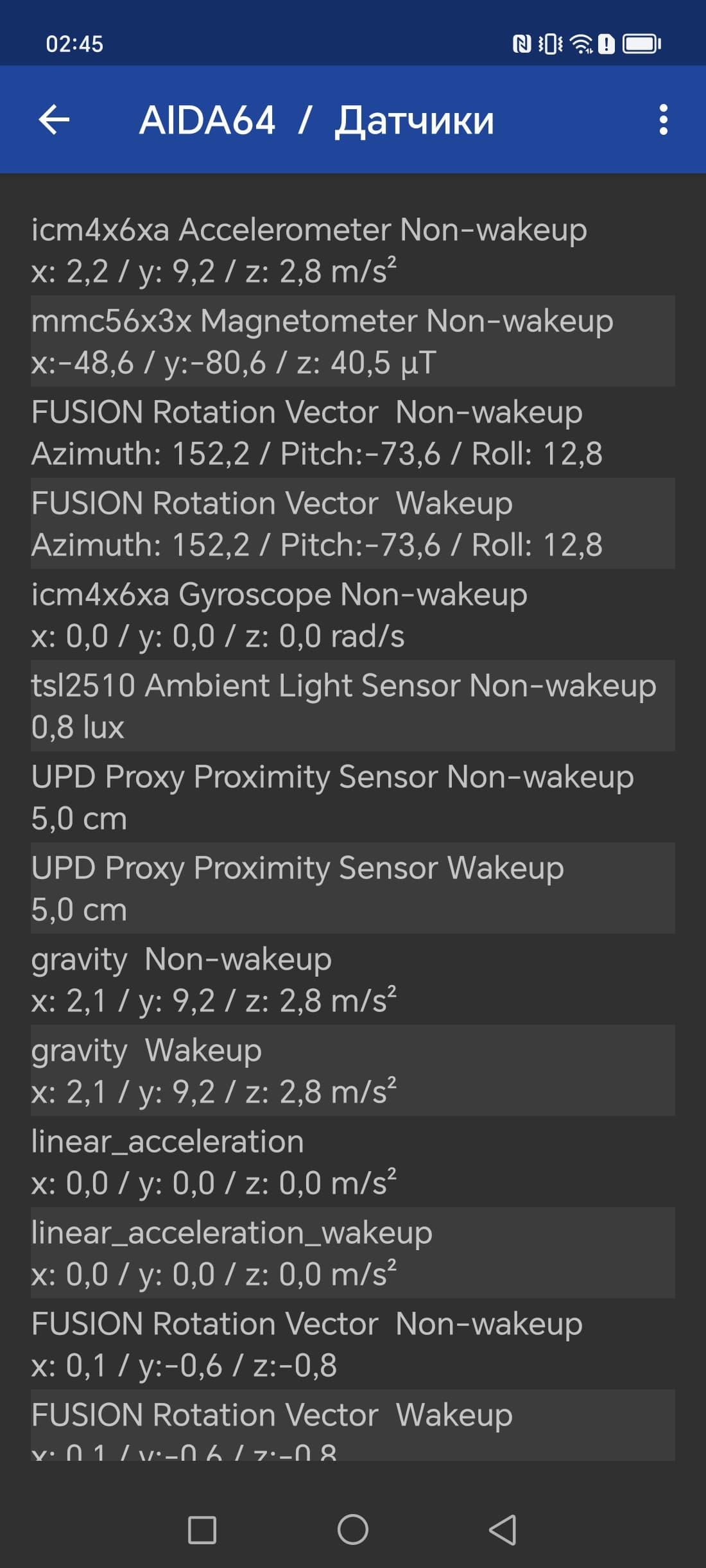 - Датчики приближения и освещения, магнитного поля, акселерометр, гироскоп
