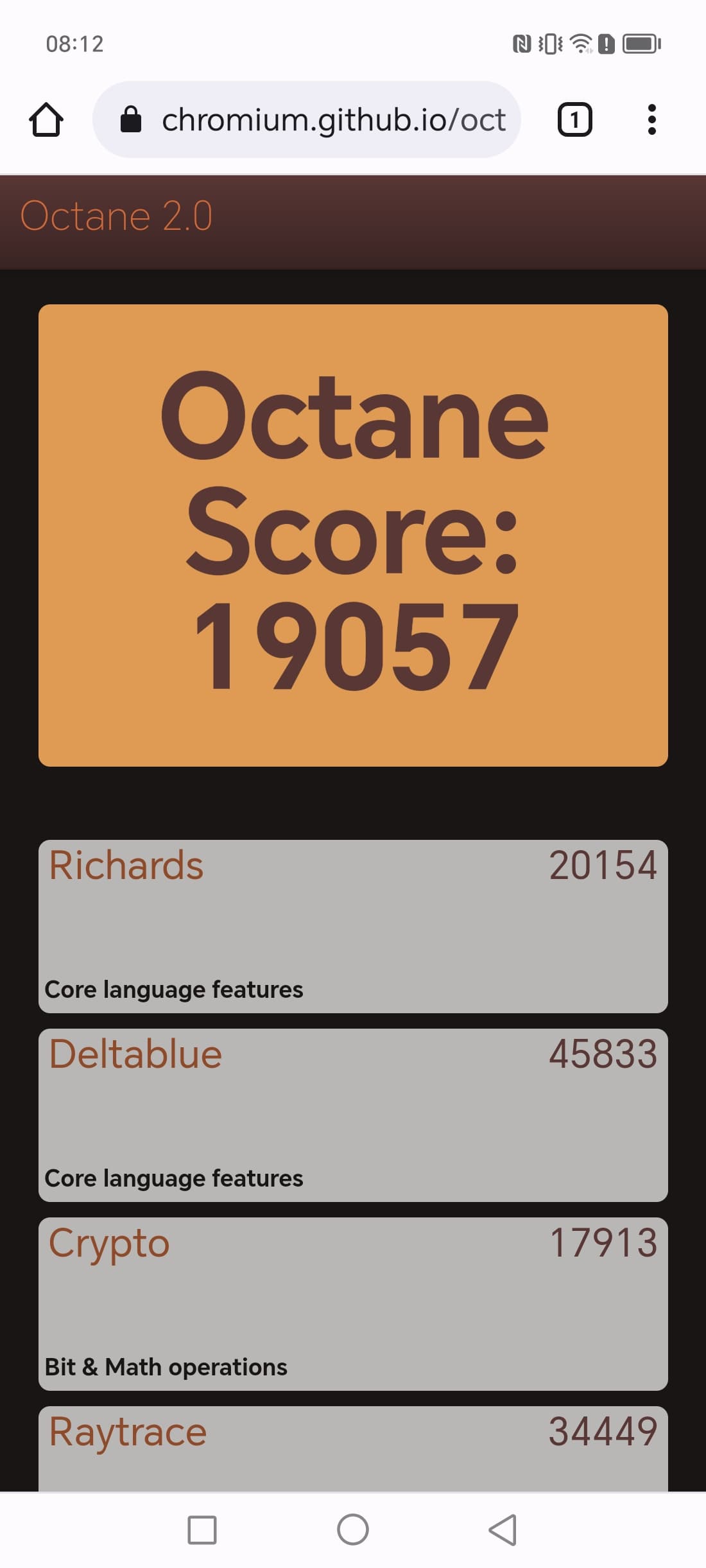 | Google Octane 2 (больше — лучше) | 19057 | 28577 | 27796 | 29329 | 27070 |