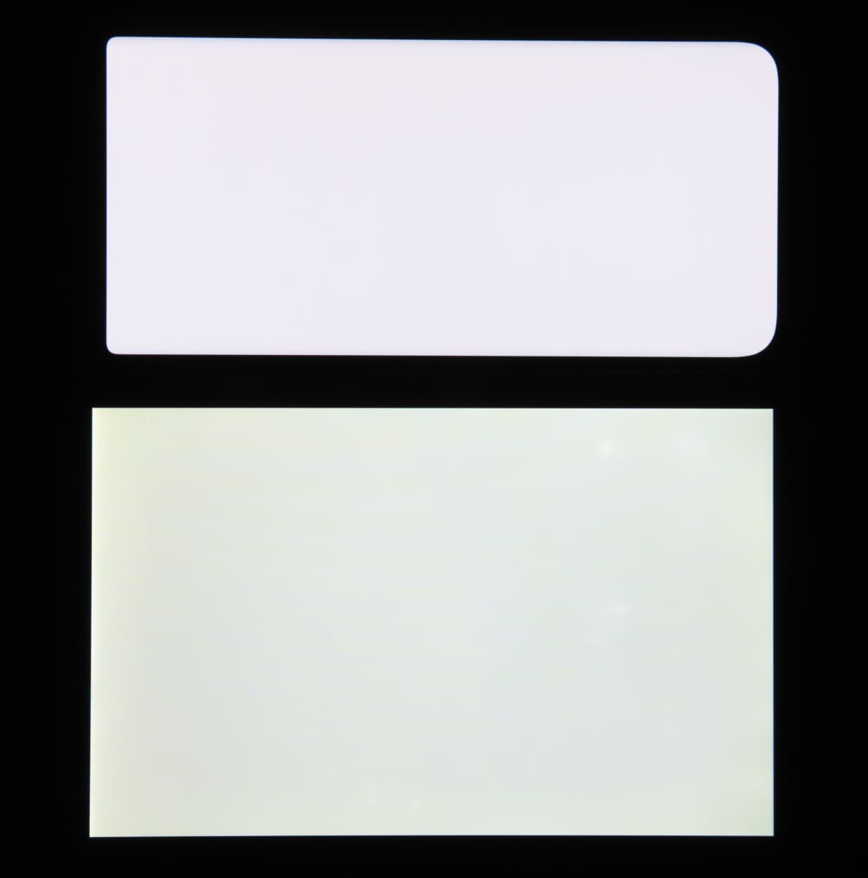 Экран характеризуется великолепными углами обзора. Даже белый цвет при отклонении на большие углы оттенок практически не приобретает, что в случае OLED встречается нечасто. Черный цвет остается просто черным под любыми углами. Он настолько черный, что параметр контрастности в данном случае неприменим. Для сравнения приведем фотографии, на которых на экраны смартфона и второго участника сравнения выведены одинаковые изображения, при этом яркость экранов изначально установлена примерно на 200 кд/м², а цветовой баланс на фотоаппарате принудительно переключен на 6500 К.
