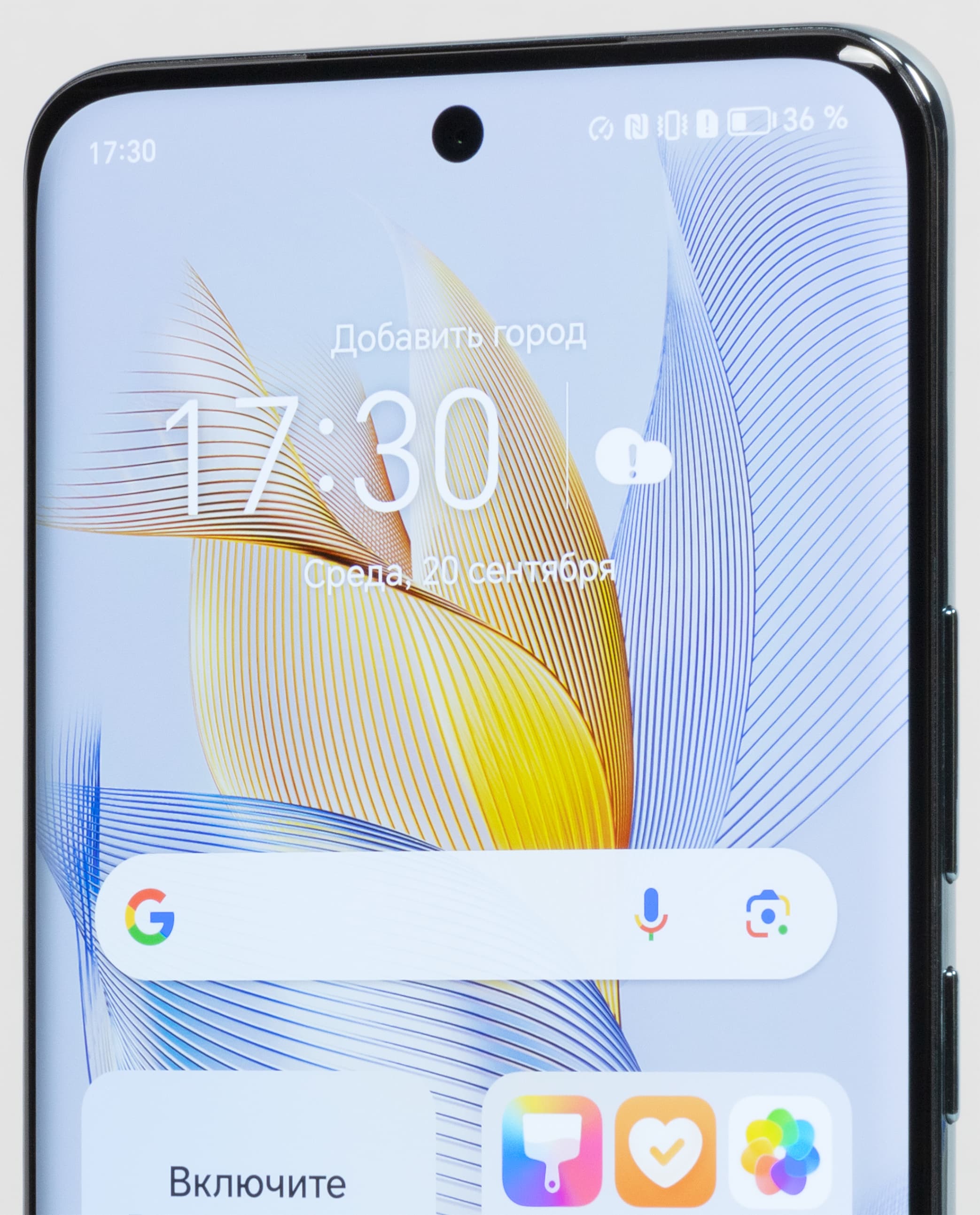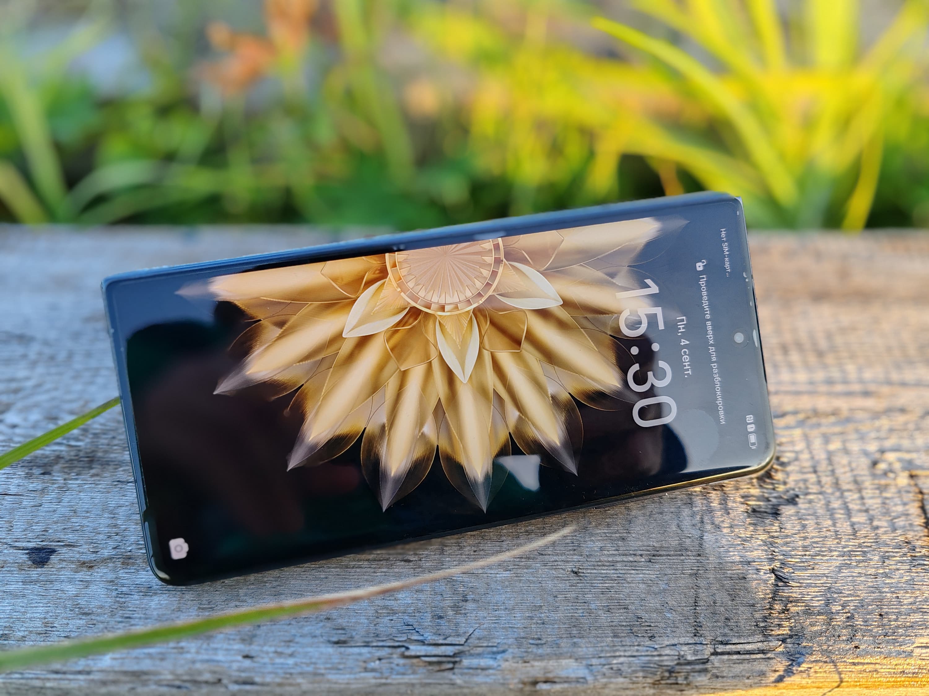 Цветопередача хорошая, цвета в меру насыщенные, цветовой баланс у экранов немного различается. Напомним, что фотография не может служить надежным источником сведений о качестве цветопередачи и приводится только для условной наглядной иллюстрации. В частности, выраженный красноватый оттенок белого и серого полей, присутствующий на фотографиях экрана смартфона, при перпендикулярном взгляде визуально отсутствует, что подтверждается аппаратными тестами с помощью спектрофотометра. Причина в том, что спектральная чувствительность матрицы фотоаппарата неточно совпадает с этой характеристикой человеческого зрения. Заметим, что в данном случае картинка занимает в высоту (при ландшафтной ориентации экрана) всю доступную для вывода изображения область и заходит на загнутые края экрана, что приводит к легкому затемнению и искажению цвета. Также на свету эти области почти всегда бликуют, что еще больше мешает при просмотре изображений, выведенных на весь экран. И даже картинка фильмов с соотношением сторон 16:9 заходит на загибы, что очень не к месту в случае видео.