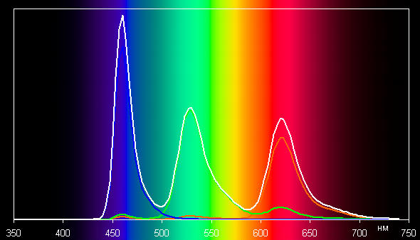 В этом устройстве есть возможность скорректировать цветовой баланс с помощью выбора профиля цветовой температуры или регулировки оттенка на цветовом круге. Впрочем, в случае профиля Обычные даже без коррекции баланс оттенков на шкале серого хороший, так как цветовая температура близка к стандартным 6500 К, и отклонение от спектра абсолютно черного тела (ΔE) ниже 10 единиц, что для потребительского устройства считается приемлемым показателем. При этом цветовая температура и ΔE мало изменяются от оттенка к оттенку — это положительно сказывается на визуальной оценке цветового баланса. (Самые темные области шкалы серого можно не учитывать, так как там баланс цветов не имеет большого значения, да и погрешность измерений цветовых характеристик на низкой яркости большая.)
