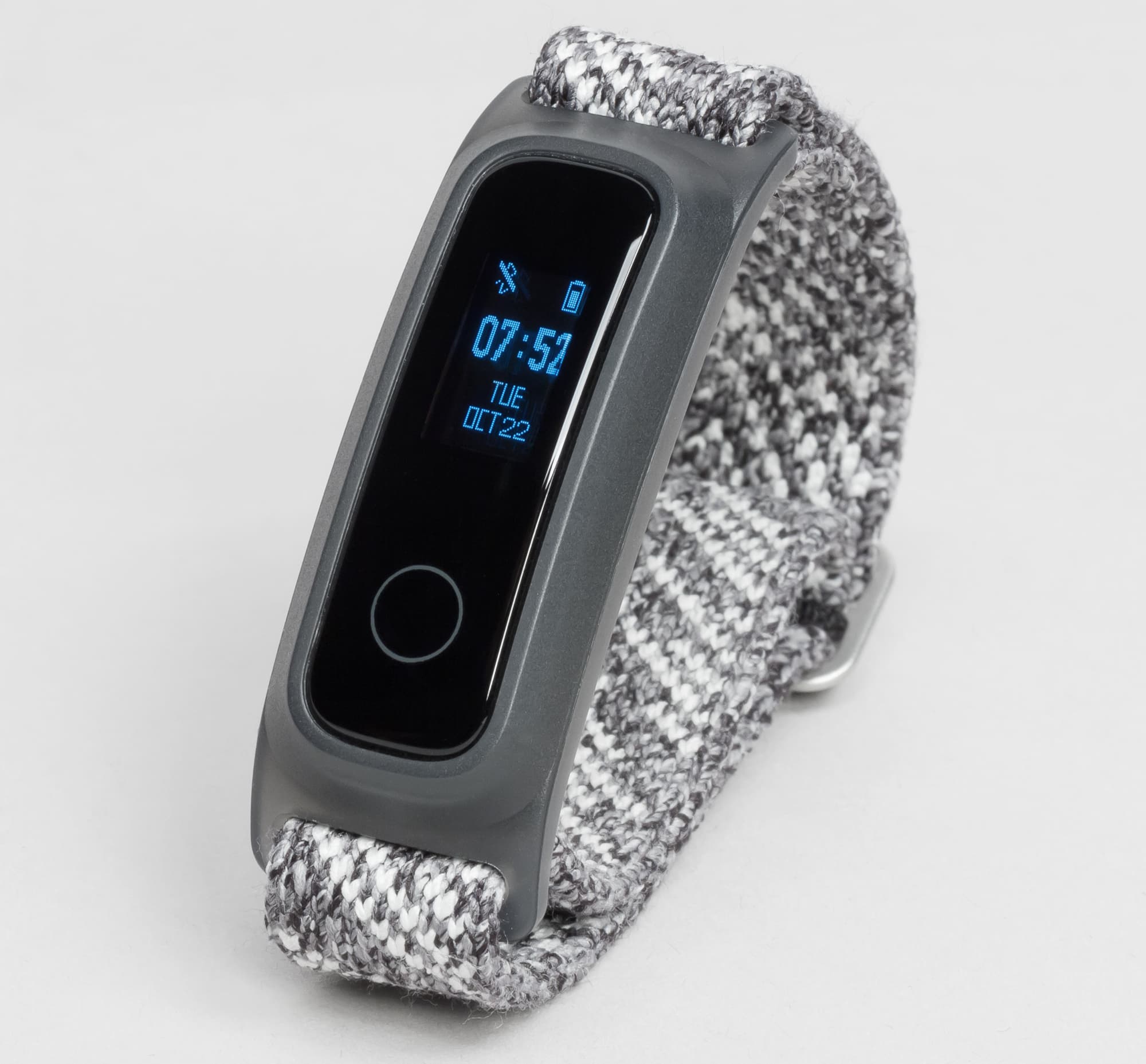 Управление осуществляется с помощью сенсорной зоны под экраном. Она обозначена кружочком, и это, пожалуй, единственное, что роднит Honor Band 5 Sport и Honor Band 5.