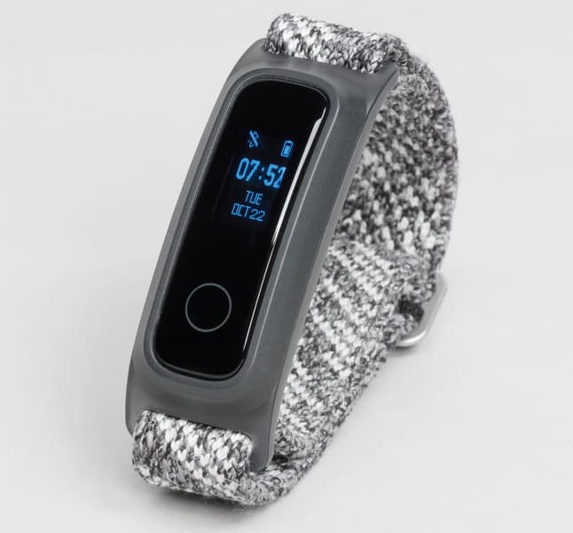 Сам электронный блок браслета представляет собой вытянутую пластиковую капсулу, фронтальная поверхность которой почти полностью закрыта стеклом. Это, однако, не значит, что здесь большой дисплей: его реальный размер меньше, чем даже у Honor Band 3 — 0,5″. В данном случае такое решение весьма логично, поскольку для монохромного дисплея, не предполагающего отображение мелкого текста, больше и не требуется.