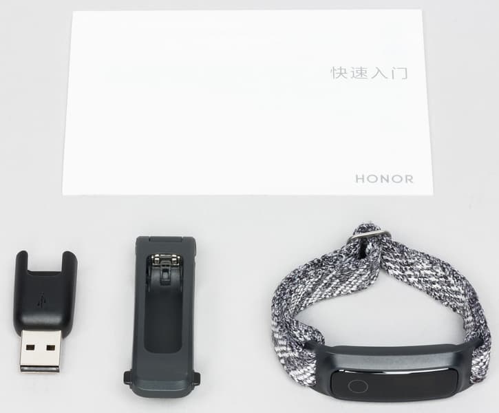 Браслет поставляется в симпатичной и довольно компактной коробке, внутри которой мы обнаруживаем само электронное устройство, листовки и руководства, съемный ремешок (о нем скажем ниже), клипсу для крепления Honor Band 5 Sport на обувь и зарядный крэдл.
