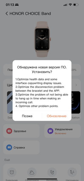 Из других приложений на браслете — «Дыхательные упражнения», «Погода», сканирование параметров здоровья (речь о пульсе и SpO2), управление музыкой (работает даже с iPhone и онлайн-стримингами типа Яндекс.Музыки, при этом отображается имя исполнителя и название трека), управление камерой смартфона, «Фонарик» (на весь экран выводится белое поле и включается максимальная яркость), «Таймер», «Секундомер», «Будильник» и «Найти телефон».