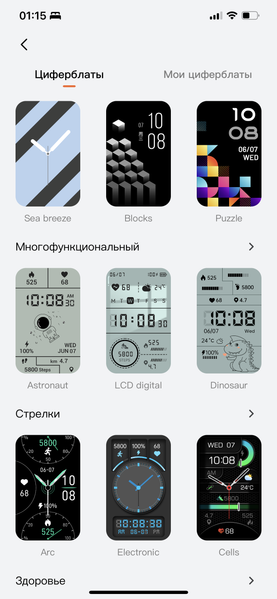 Имеется очень широкий выбор циферблатов. Все они бесплатны.