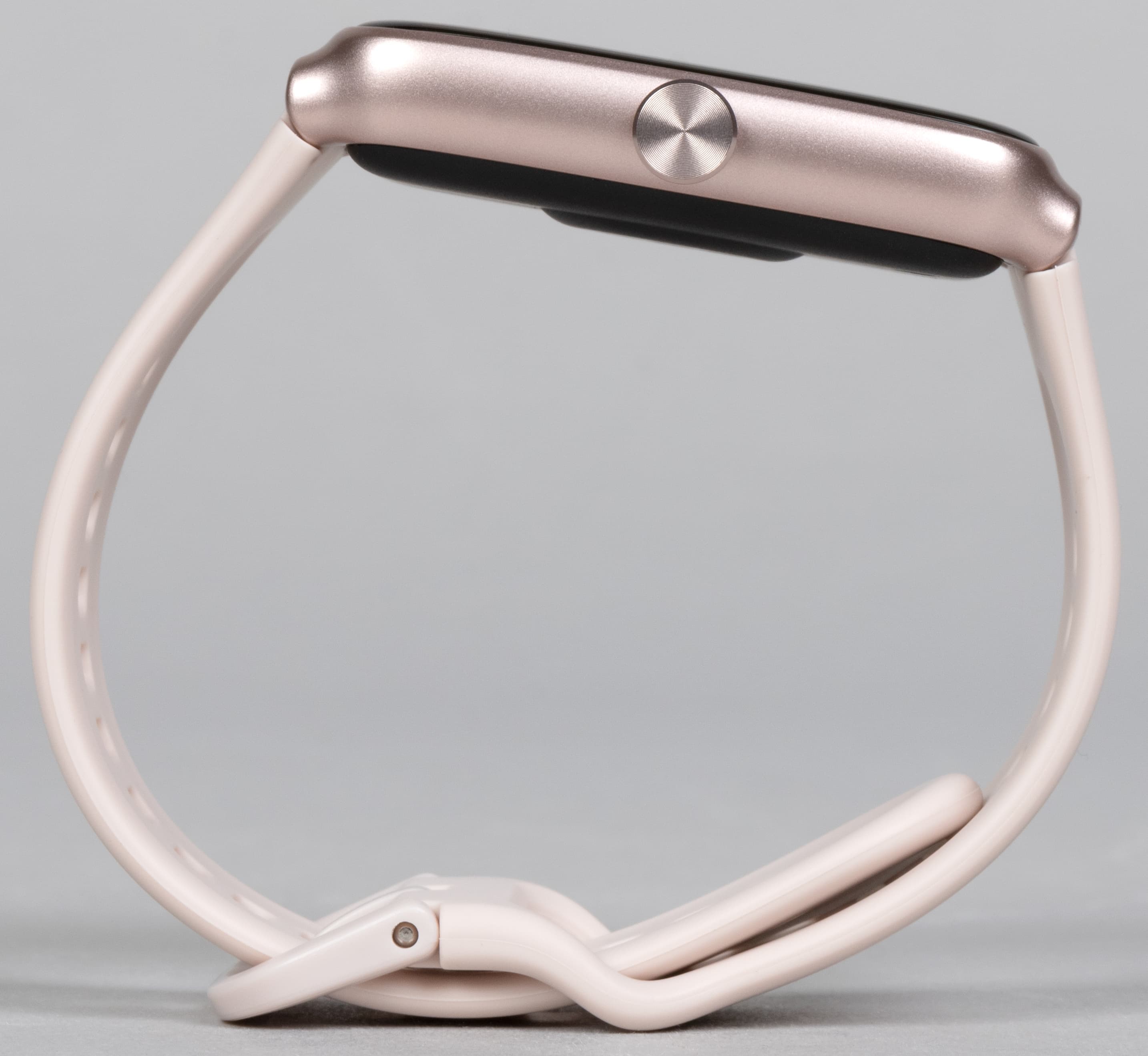 Впрочем, благодаря стандартному креплению и классической ширине 22 мм нет никаких проблем заменить ремешок на такой, который вам больше придется по вкусу. Важно только попасть в цвет. У модели, приехавший к нам на тестирование, корпус был нежно-розового оттенка, а ремешок — мягкого кремового цвета. Это удачный женский вариант, выглядящий не пошло и гармонично, хотя и едва ли возможный для пользователя мужского пола или строгой бизнес-леди.