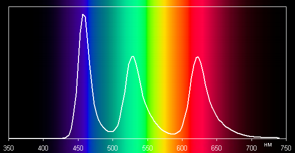 Спектры типичны для OLED — области первичных цветов явно хорошо разделены и имеют вид относительно узких пиков: