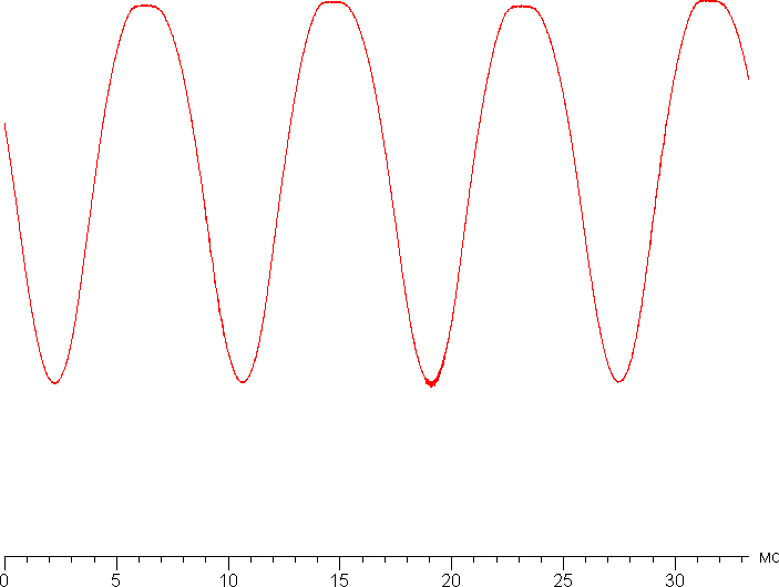 На графике зависимости яркости от времени определяется значимая модуляция с частотой примерно 120 Гц, но мерцание визуально не обнаруживается, так как амплитуда ниже 100% и фаза модуляции различается по площади экрана. На рисунке ниже приведены зависимости яркости (вертикальная ось) белого поля от времени (горизонтальная ось) в режиме фонарика.