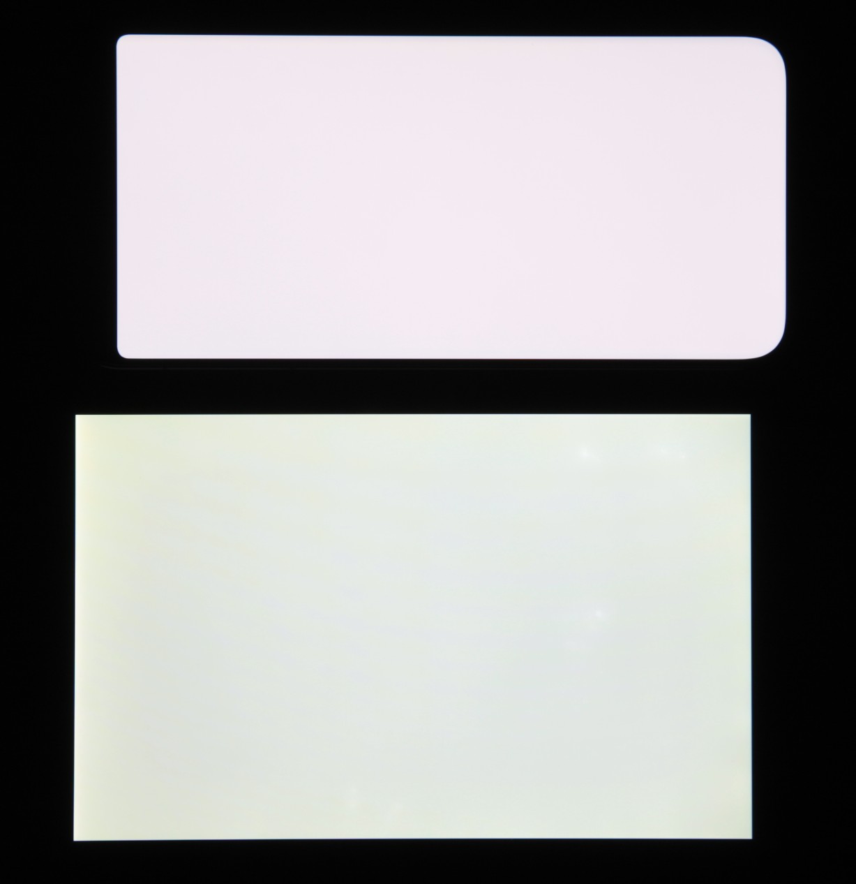Экран характеризуется великолепными углами обзора. Яркость под углом у обоих экранов заметно уменьшается (если сравнивать с Nexus 7), но в случае смартфона падение яркости выражено гораздо меньше. В итоге при формально одинаковой яркости экран этого смартфона визуально выглядит гораздо более ярким (в сравнении с ЖК-экранами), так как на экран мобильного устройства часто приходится смотреть как минимум под небольшим углом. Правда, у смартфона белый цвет при отклонении на большие углы приобретает легкий сине-зеленый оттенок, но черный цвет остается просто черным под любыми углами. Он настолько черный, что параметр контрастности в данном случае неприменим. Для сравнения приведем фотографии, на которых на экраны смартфона и второго участника сравнения выведены одинаковые изображения, при этом яркость экранов изначально установлена примерно на 200 кд/м², а цветовой баланс на фотоаппарате принудительно переключен на 6500 К.