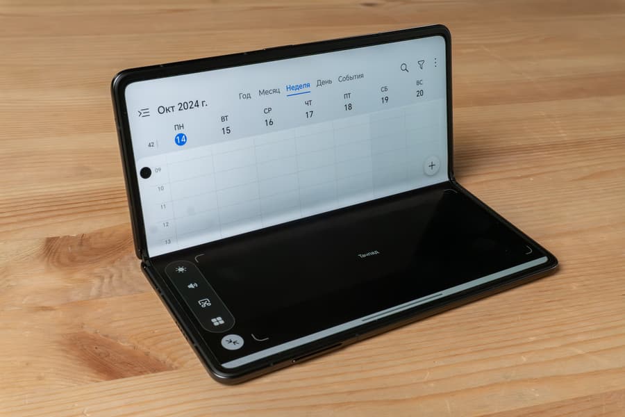 Но у смартфона есть и среднее состояние, причем в оболочке для него даже предусмотрен специальный режим: одна из половинок становится тачпадом с несколькими инструментами. Впрочем, ничто не мешает авторам приложений использовать «полусогнутый» режим как-то иначе.