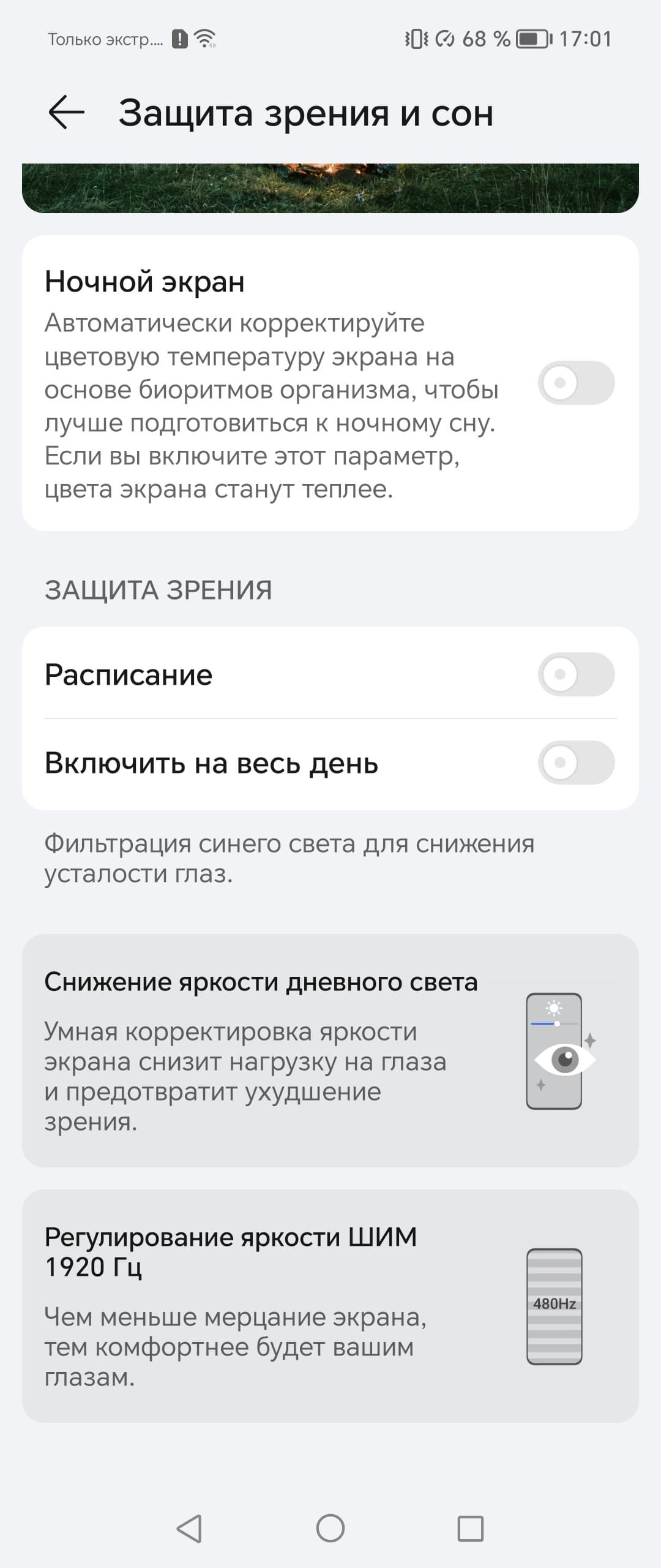 Разумеется, присутствует настройка, позволяющая снизить интенсивность синей компоненты: