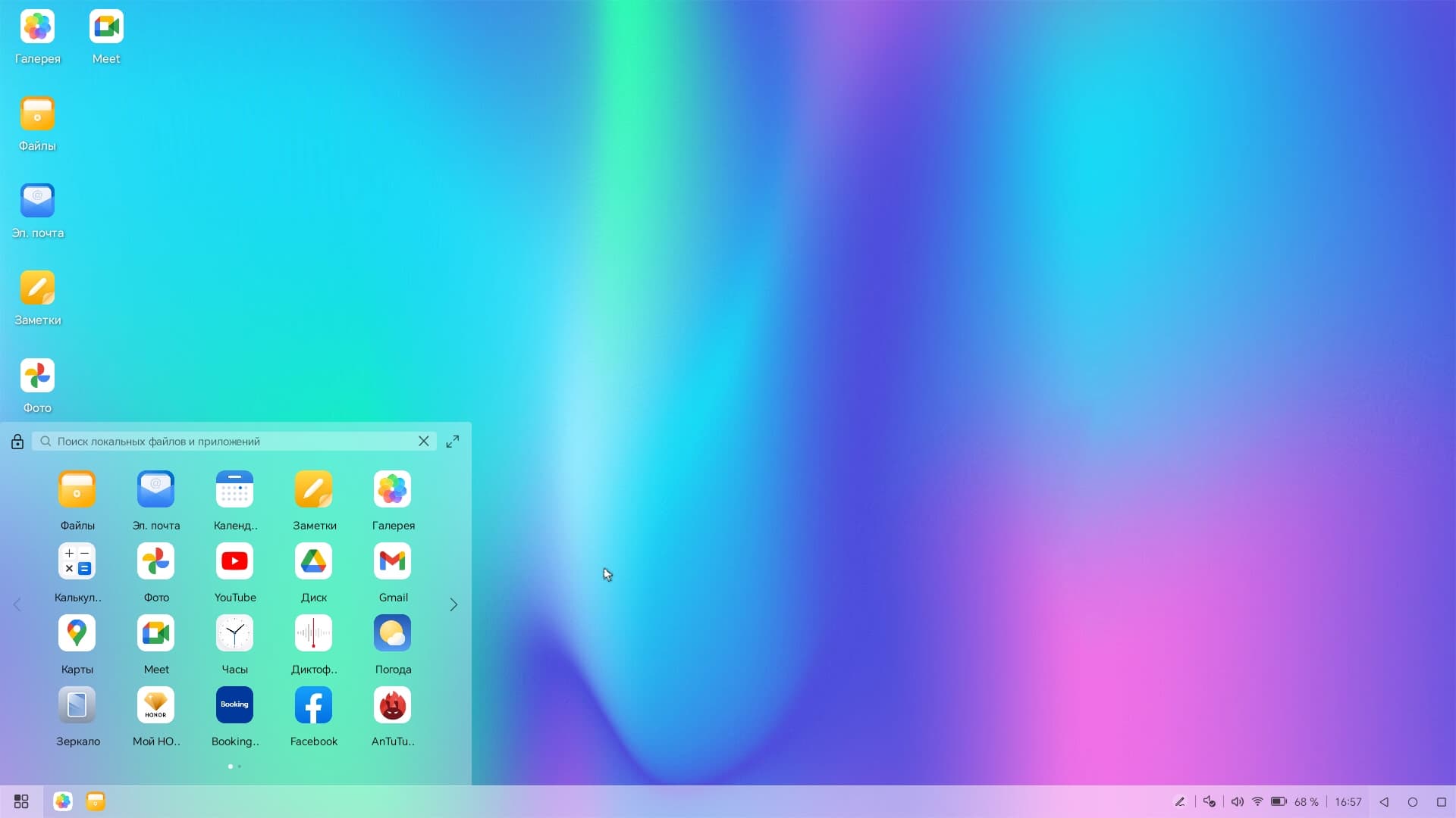На внешней панели установлен большой экран, занимающий всю ее поверхность. Это высококлассный цветной AMOLED-дисплей с диагональю 6,45″ (2560×1080, 431 ppi), поддерживающий частоту обновления 120 Гц. И это не дополнительный маленький внешний дисплей, предназначенный только для специальных виджетов, а полноценный экран, с которым Honor Magic Vs можно эксплуатировать так же, как любой другой смартфон, вовсе не раскрывая половинки его корпуса.