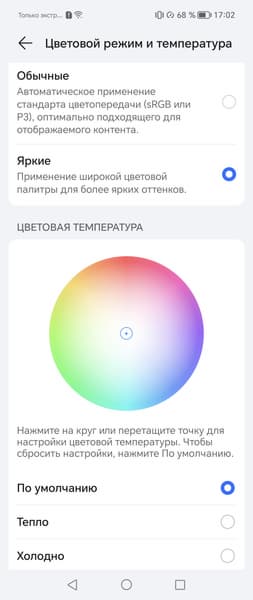 Фотография выше получена после выбора профиля Обычные в настройках экрана, всего их два: