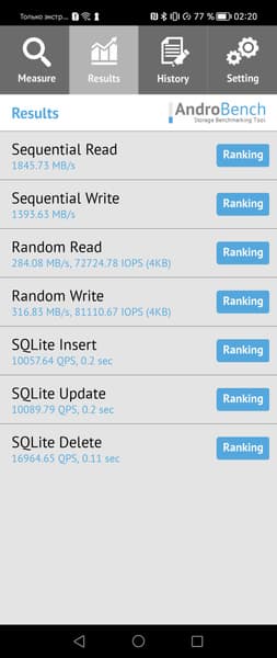 Результаты теста AndroBench на скорость работы с памятью: