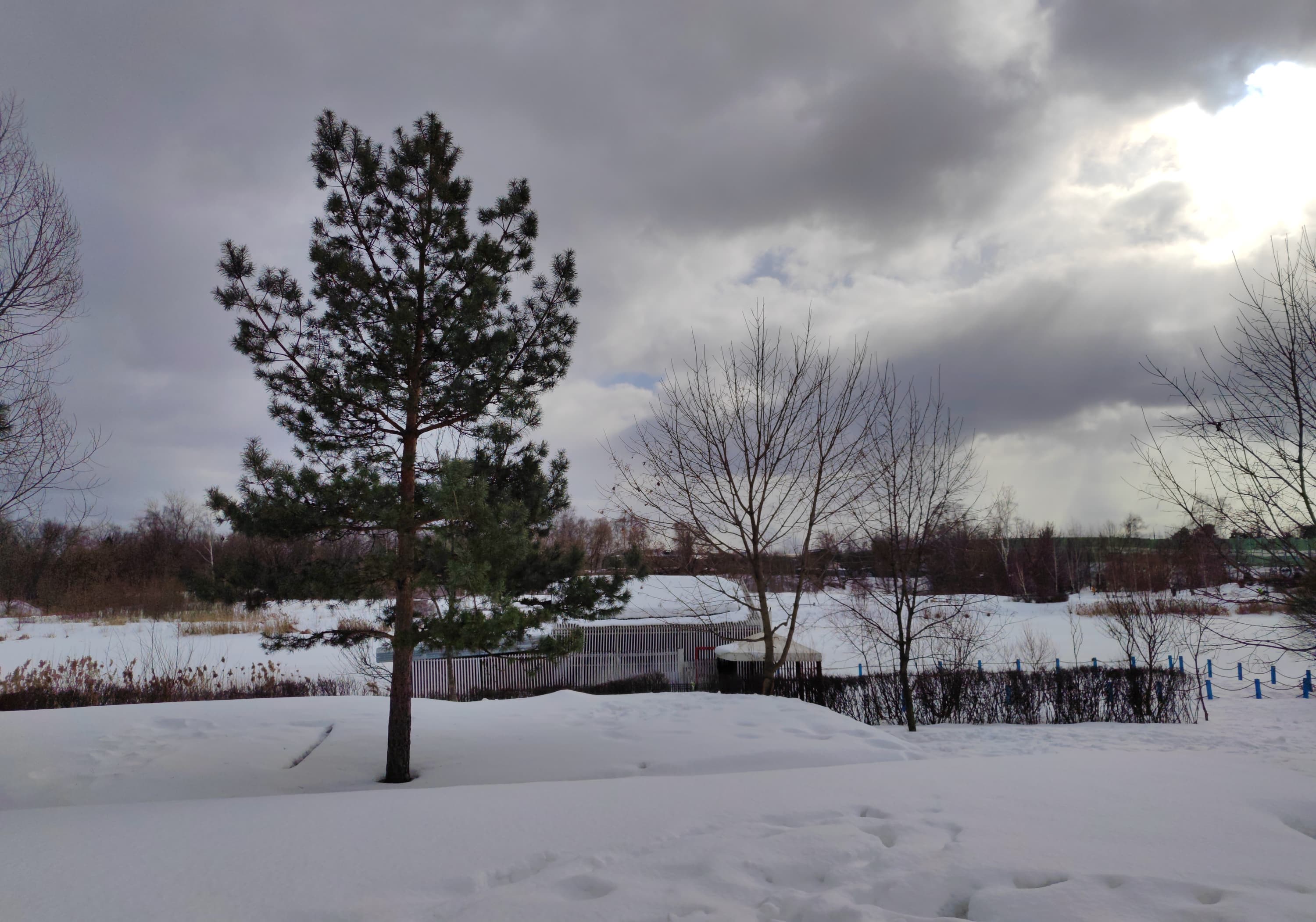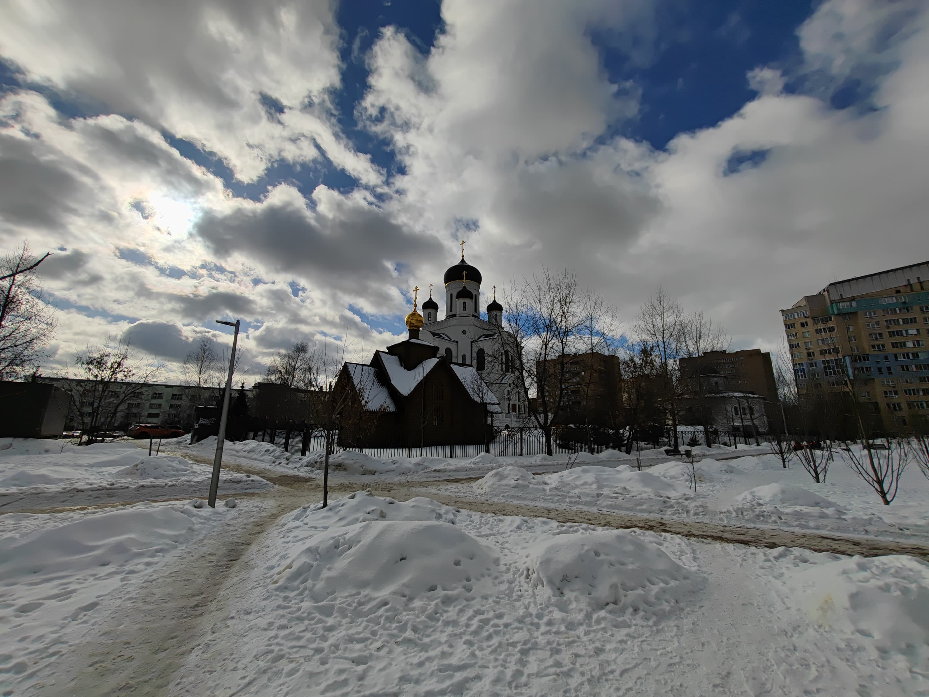 Модуль, предназначенный для широкоугольной съемки, имеет матрицу 50 Мп и угол обзора объектива 122°. Детализация здесь значительно слабее, на 50-мегапиксельные фотографии слабонервным вообще смотреть не рекомендуется. Впрочем, в центральной части кадра при ярком освещении резкость вполне приличная, но практически ничем другим эта камера похвастать не может. По краям картинка очень рыхлая, а еще явно какие-то проблемы с выставлением экспозиции — снимки гораздо более темные, чем на главную камеру, и это ничем не оправдано.