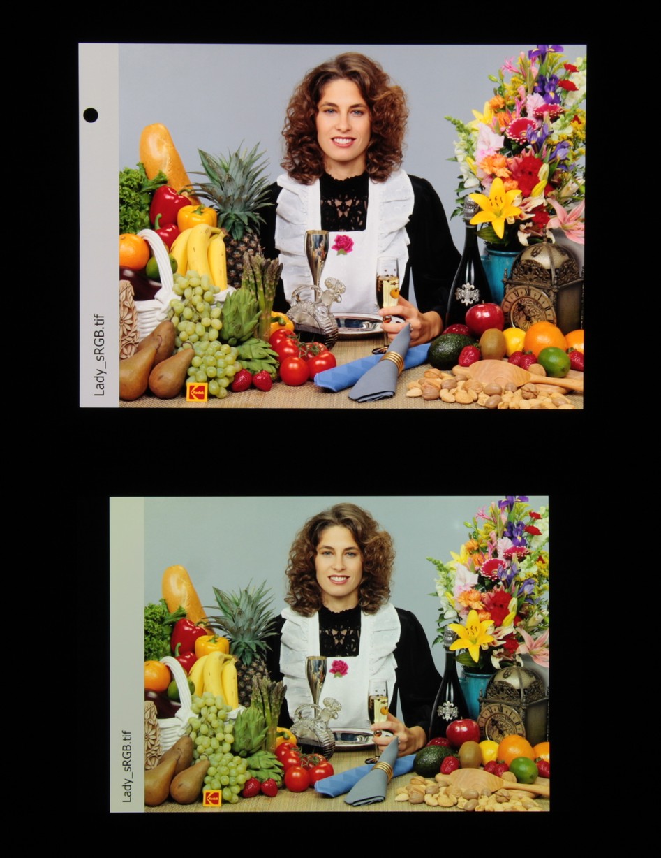 Отметим хорошую равномерность яркости и цветового тона белого поля.
