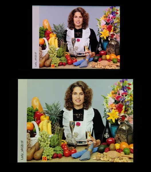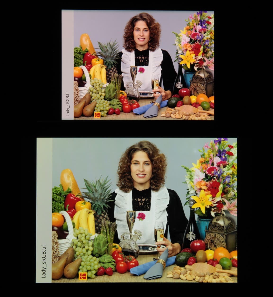 Отметим, что на экранах с уширенным цветовым охватом (без соответствующей коррекции) цвета́ обычных изображений, оптимизированных для устройств sRGB, выглядят неестественно насыщенными. Отсюда и рекомендация: в большинстве случаев смотреть кино, фотографии и все естественное лучше при выборе профиля Обычные.