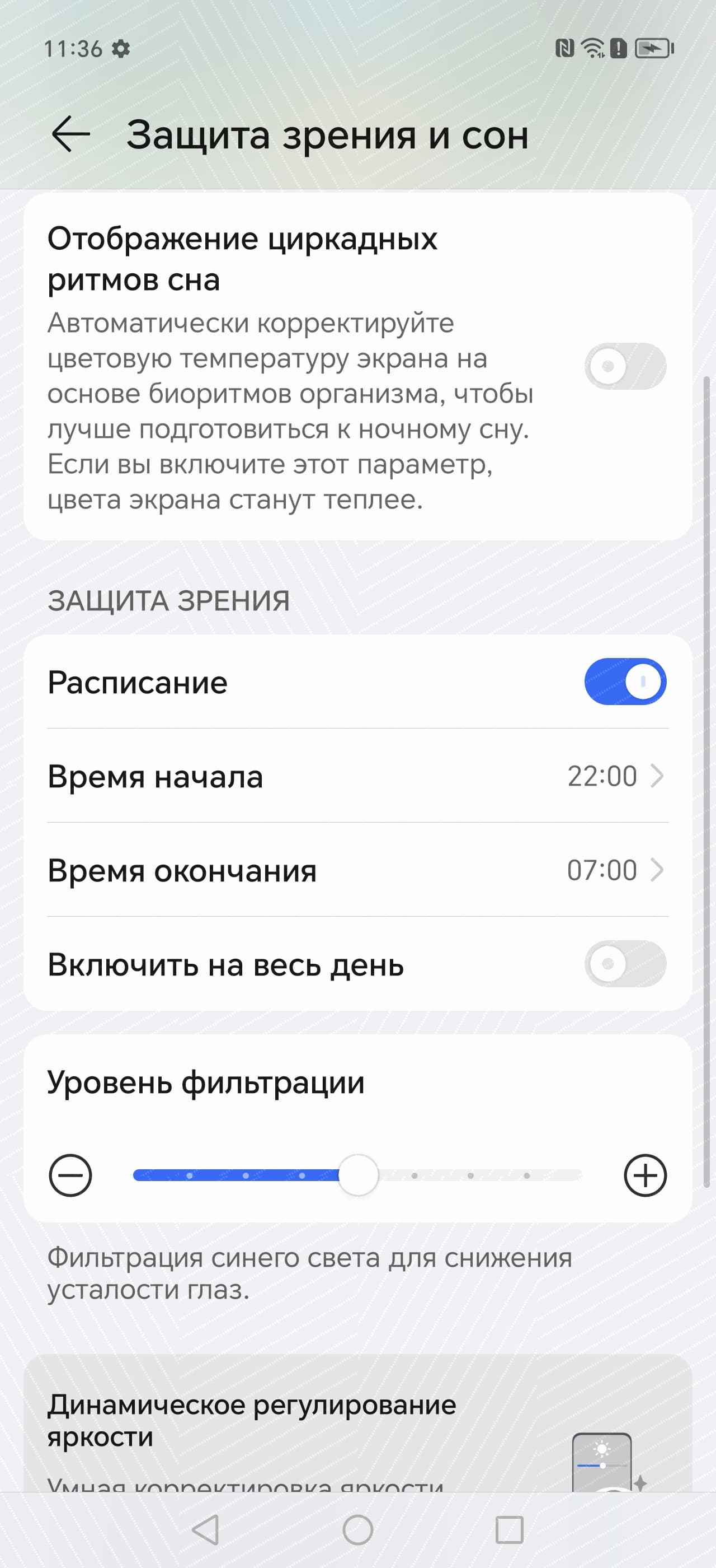 В описании режима Защита зрения приведена дезинформация про усталость глаз. В принципе, яркий свет может приводить к нарушению суточного (циркадного) ритма (см. статью про iPad Pro с дисплеем 9,7 дюйма), но все решается снижением яркости до низкого, но еще комфортного уровня, а искажать цветовой баланс, уменьшая вклад синего, нет абсолютно никакого смысла.