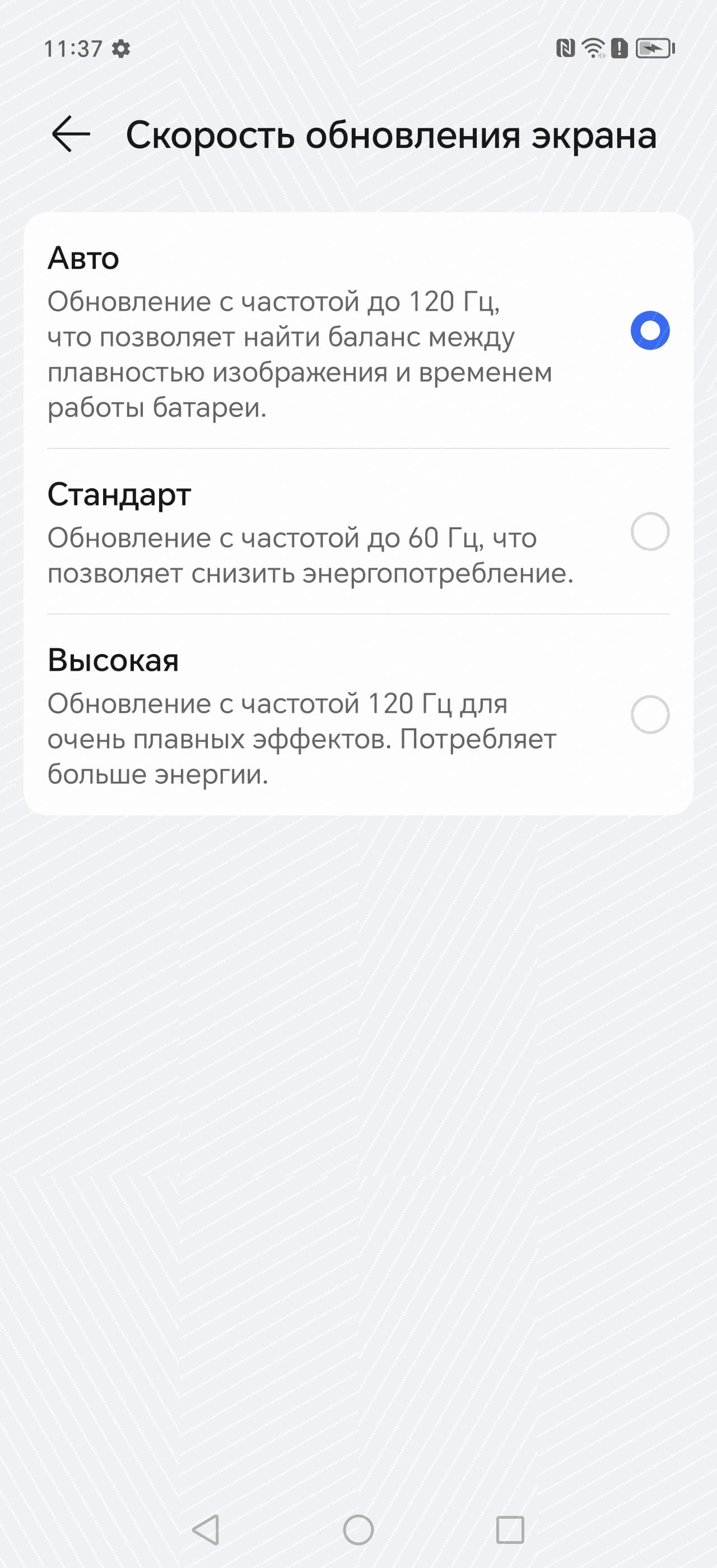 В настройках экрана можно включить режим с повышенной до 120 Гц частотой обновления.