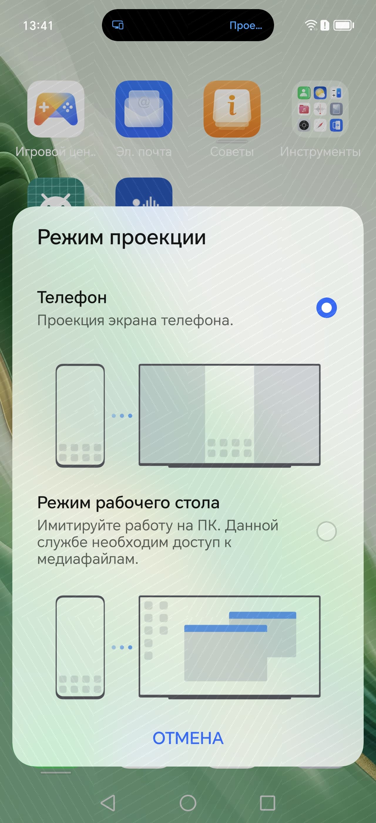 Во втором случае при портретной ориентации экрана смартфона картинка на экране ТВ выводится вписанной по высоте и с широкими черными полями по бокам, а при ландшафтной — вписанной по ширине с узкими черными полями сверху и снизу. Вывода точка в точку в обоих вариантах нет.