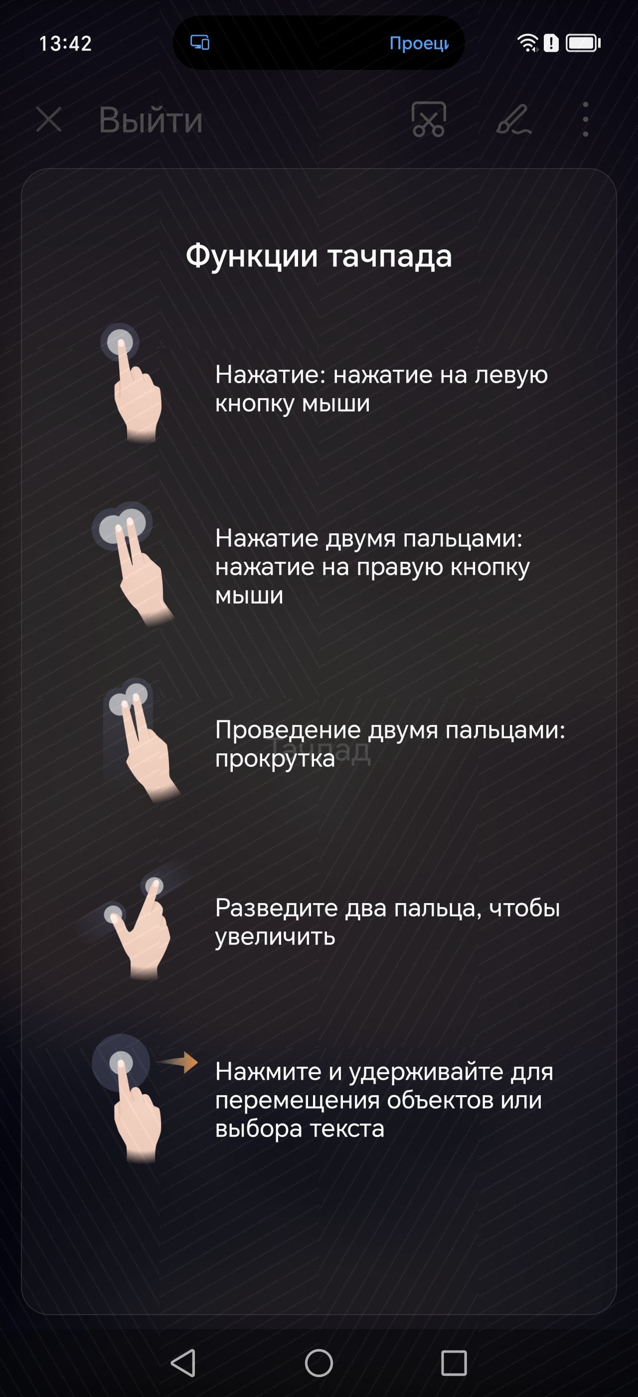 При этом экран смартфона может использоваться в качестве сенсорной панели координатного ввода, или быть планшетом для рисования поверх рабочего стола, или работать как обычно, вторым рабочим столом небольшого размера.