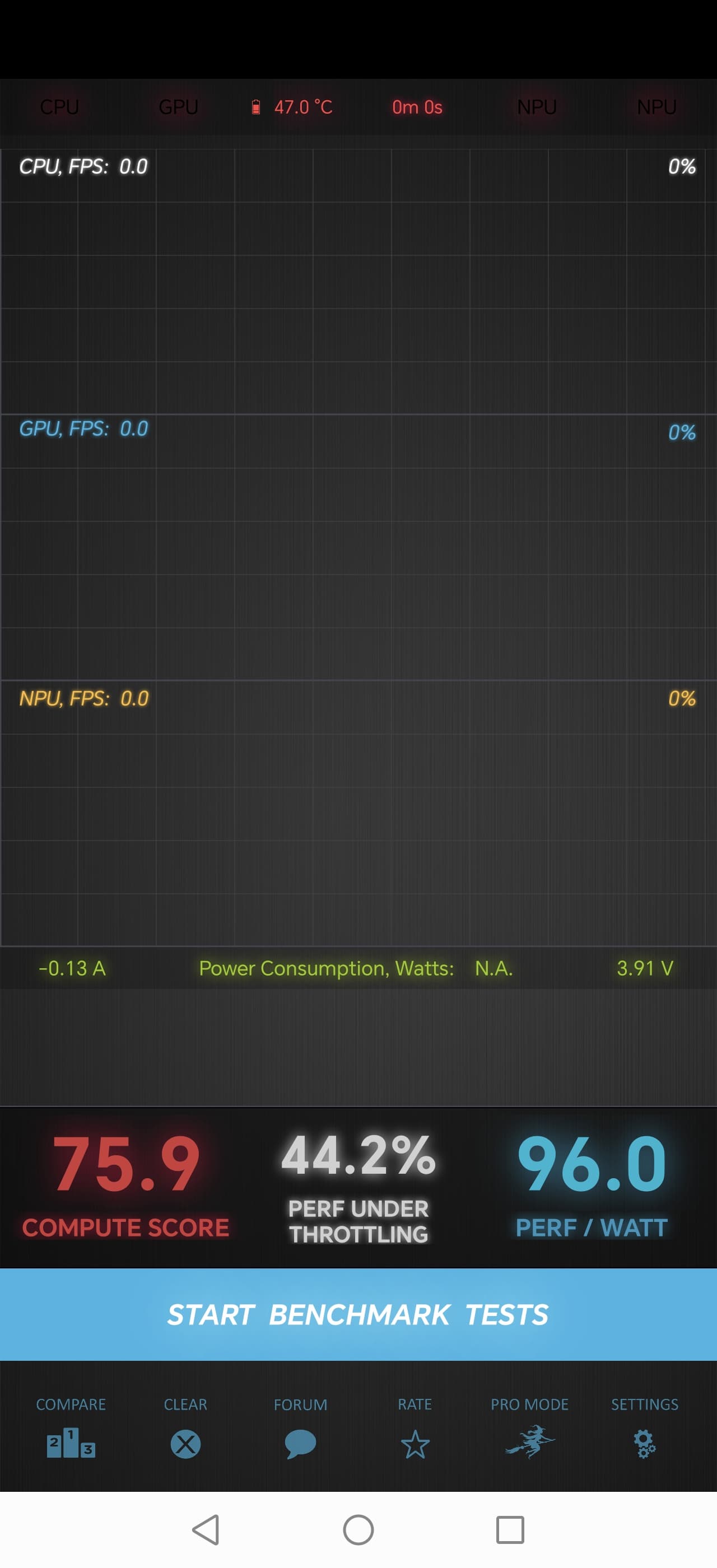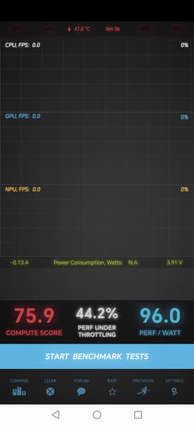 Тест на снижение производительности при нагреве мы проводим с помощью программы Burnout Benchmark, которая позволяет нагружать CPU, GPU и NPU: