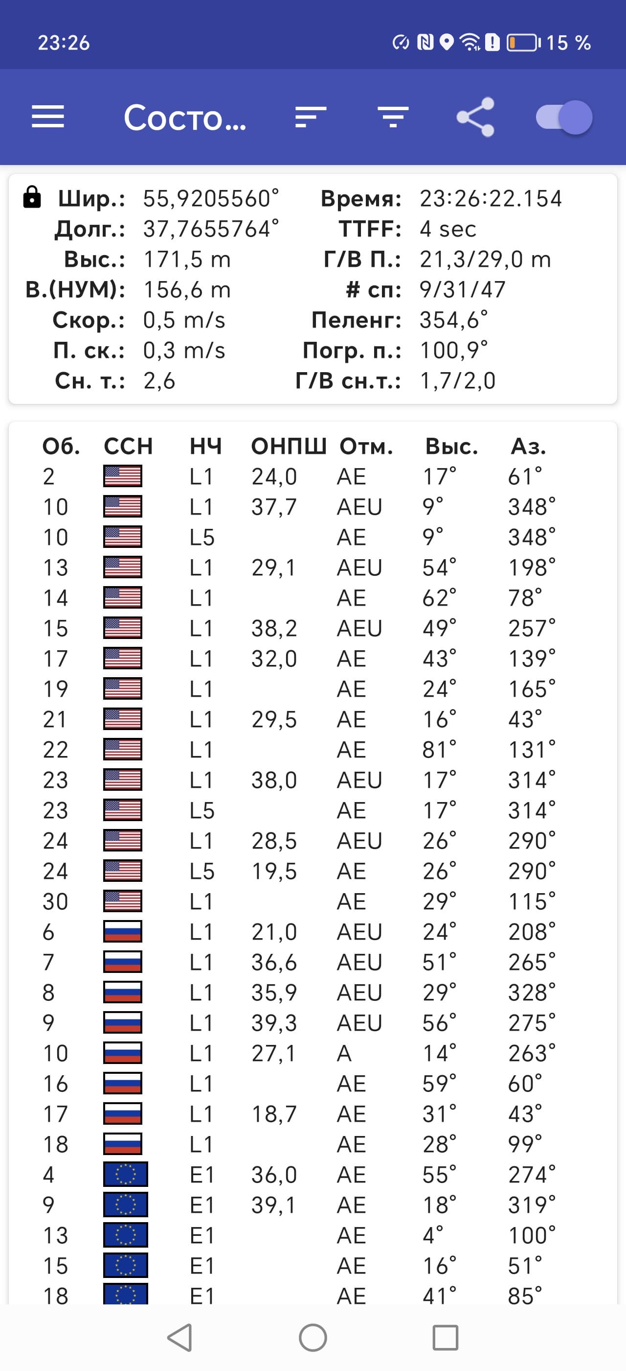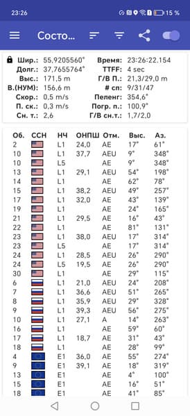 Двухканальный модуль спутниковой навигации работает с GPS (L1+L5), Глонасс, BDS (B1I+B1c+B2a) и Galileo (E1+E5a). Первые спутники при холодном старте обнаруживаются быстро, точность позиционирования не вызывает претензий.