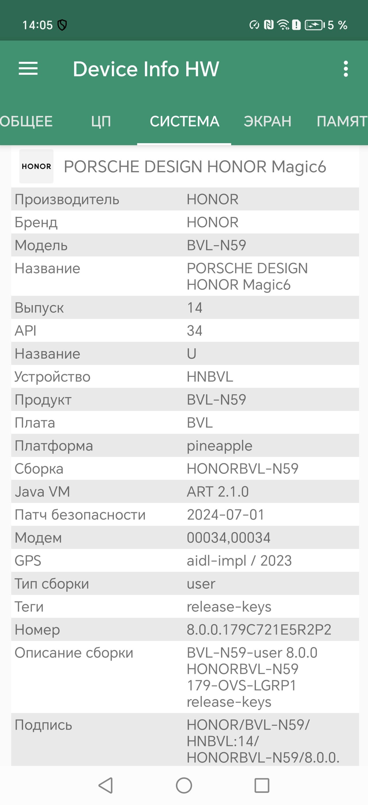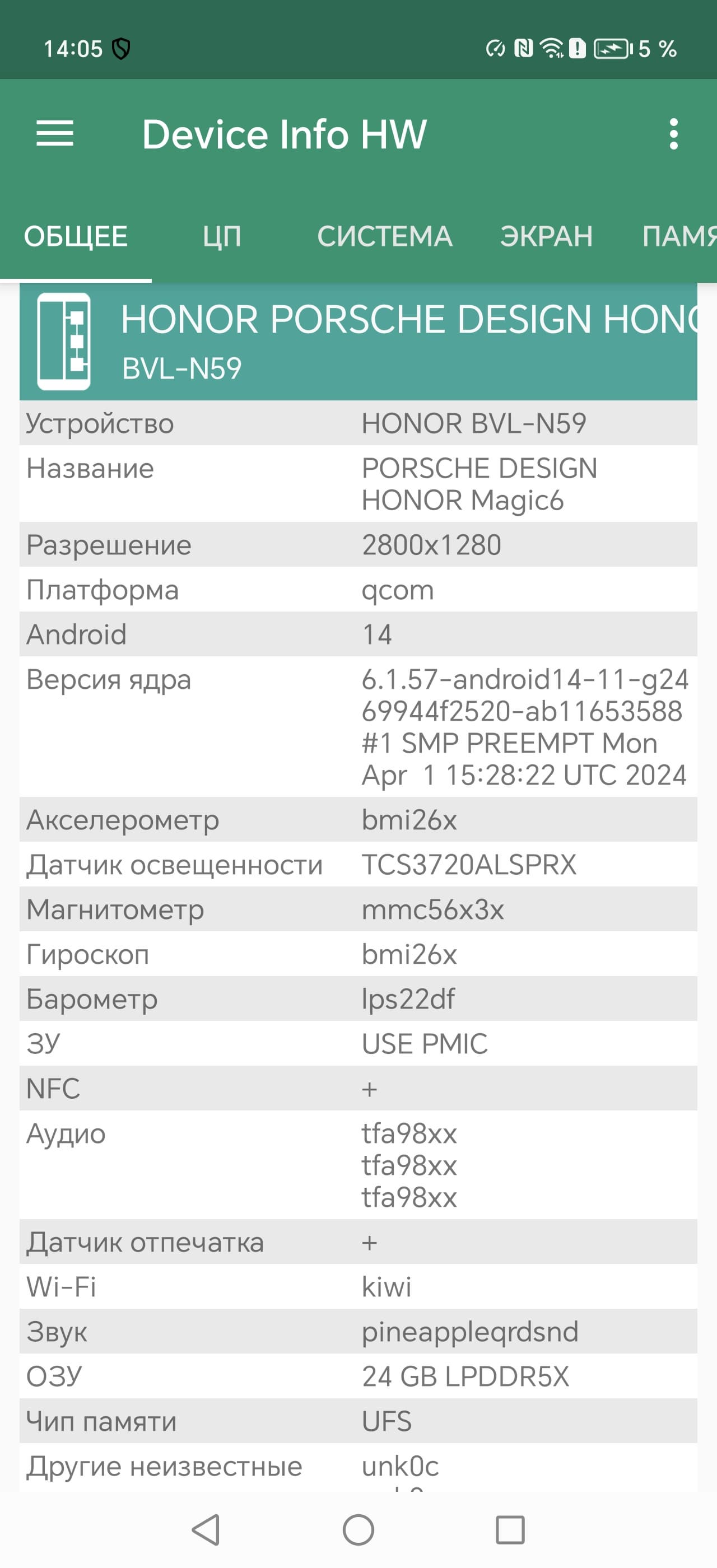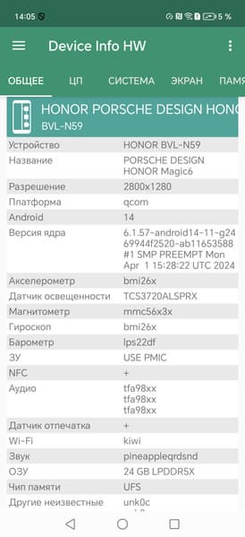 Основные характеристики Honor Magiс6 RSR Porsche Design