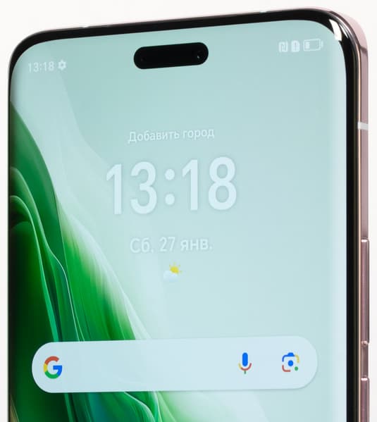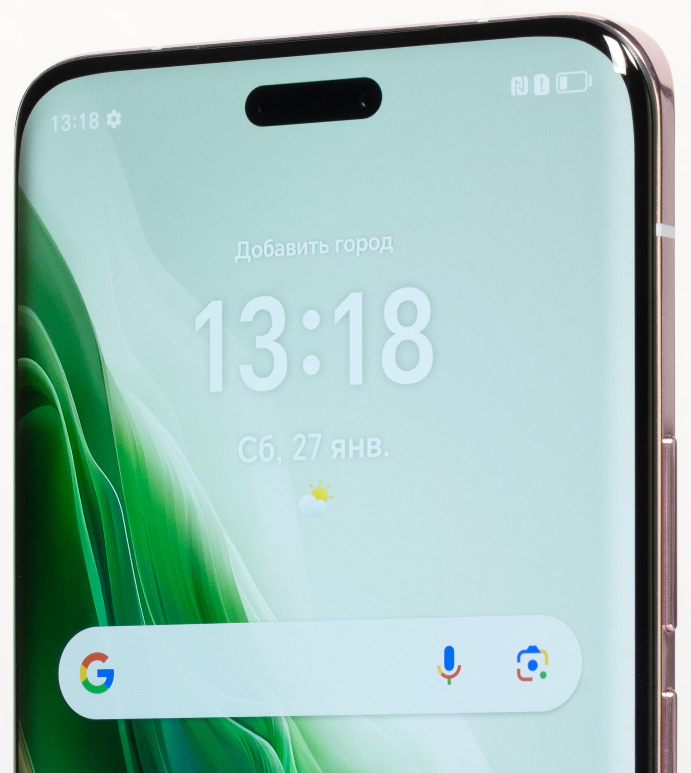 Цветопередача хорошая, цвета в меру насыщенные, цветовой баланс у экранов немного различается. Напомним, что фотография не может служить надежным источником сведений о качестве цветопередачи и приводится только для условной наглядной иллюстрации. В частности, выраженный красноватый оттенок белого и серого полей, присутствующий на фотографиях экрана смартфона, при перпендикулярном взгляде визуально отсутствует, что подтверждается аппаратными тестами с помощью спектрофотометра. Причина в том, что спектральная чувствительность матрицы фотоаппарата неточно совпадает с этой характеристикой человеческого зрения. Заметим, что в данном случае картинка занимает в высоту (при ландшафтной ориентации экрана) всю доступную для вывода изображения область и заходит на загнутые края экрана, что приводит к легкому затемнению и искажению цвета. Также на свету эти области почти всегда бликуют, что еще больше мешает при просмотре изображений, выведенных на весь экран. И даже картинка фильмов с соотношением сторон 16:9 заходит на загибы, что очень не к месту в случае видео. Легкий загиб есть даже на коротких сторонах экрана, что не оставляет шансов на отсутствие бликов.