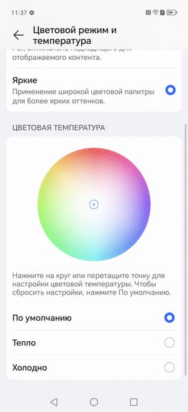 Фотография выше получена при активном профиле Обычные [цвета] в настройках экрана, всего их два: