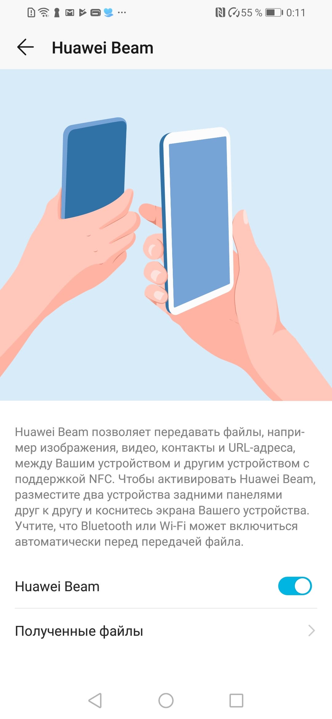 Если нужно передать, например, фотографию на телефон друга, которых находится рядом, то не обязательно использовать почту или мессенджеры, тратя при этом трафик. Современные смартфоны на Android с модулем NFC имеют удобную функцию, которая называется Android Beam (конкретные производители могут называть собственную реализацию немного иначе).