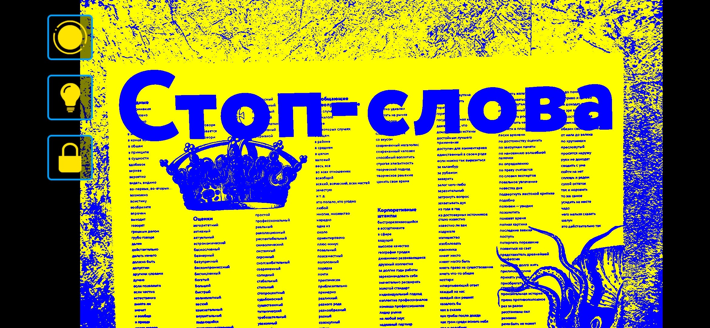 Вторая кнопка — это включение и выключение фонарика для подсветки того же текста.