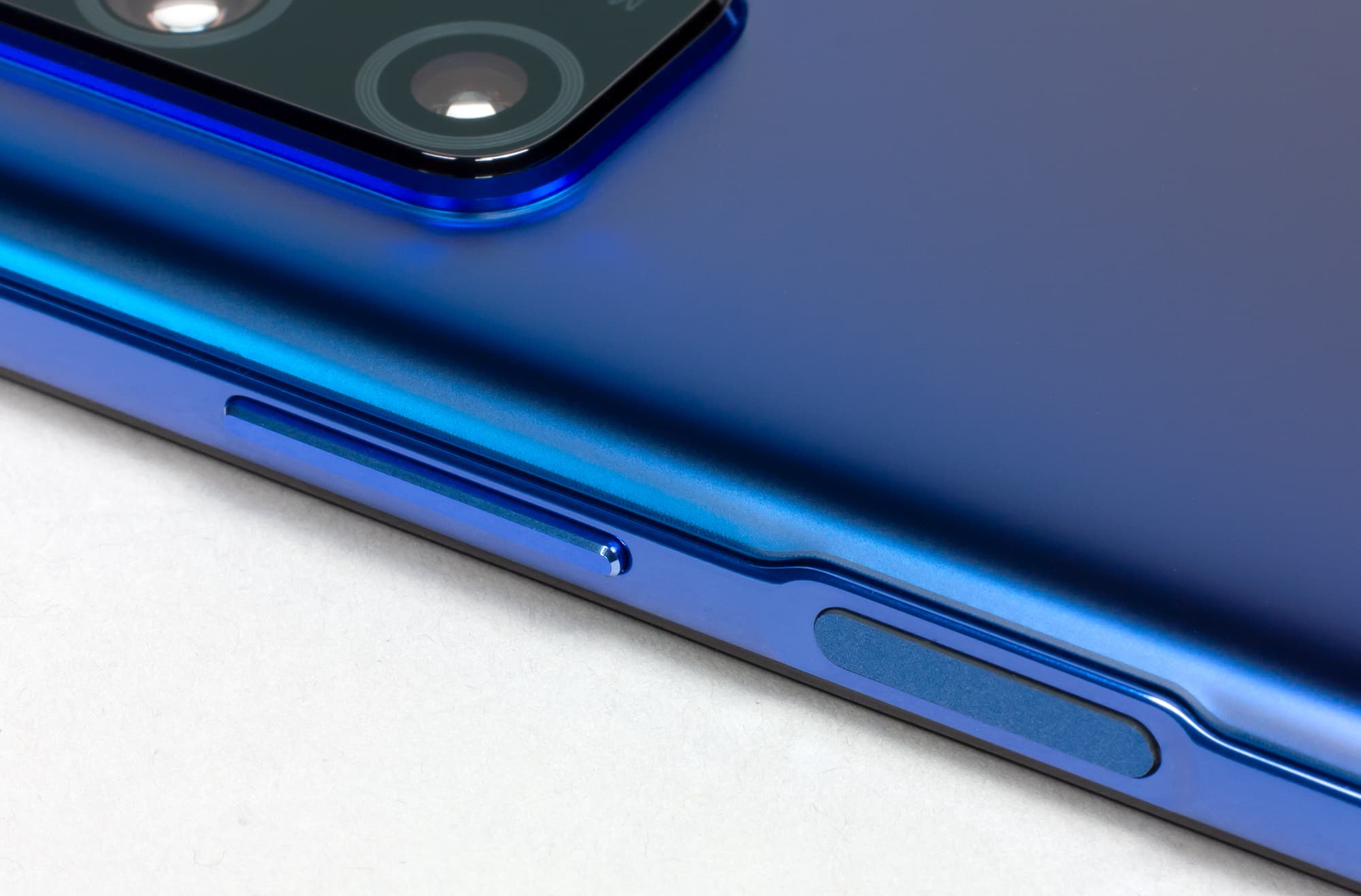 Боковые кнопки установили на одной боковине. Кнопки крупные, удобные, с приятным мягким и глубоким ходом. Но совсем хорошо, что сканер отпечатков пальцев здесь расположен не под экраном и даже не сзади, а в идеальном месте: прямо под пальцем на площадке кнопки питания. Сканер работает быстро и безошибочно.