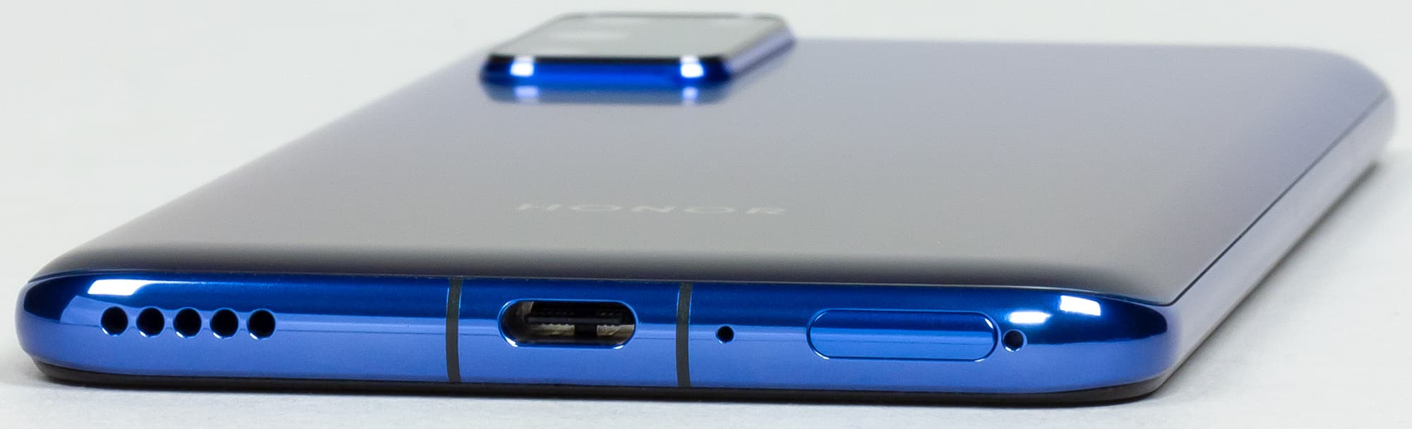 В нижнем торце установлены основной динамик, разговорный микрофон и разъем USB Type-C. К сожалению, 3,5-миллиметровый аудиовыход для наушников у смартфона отсутствует, это печально.