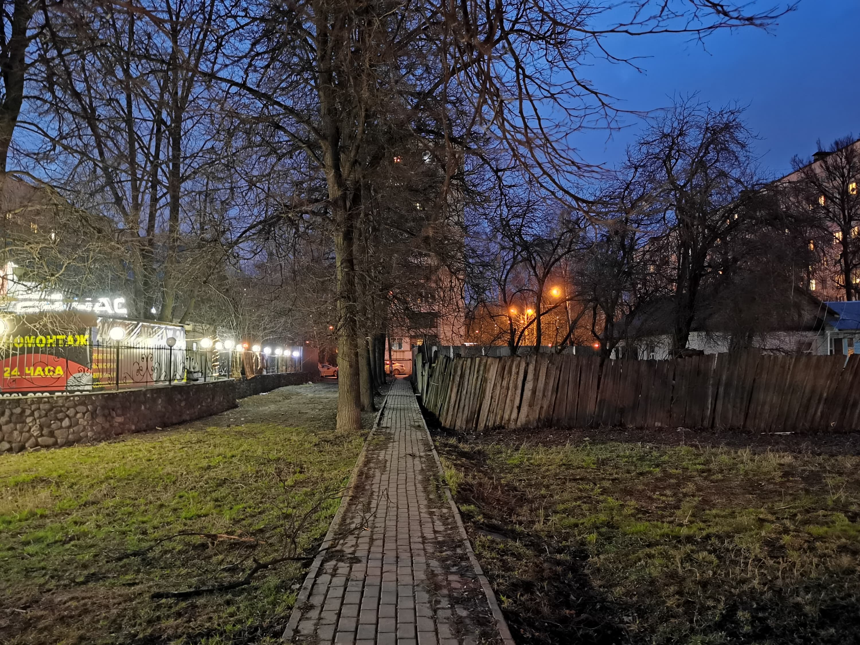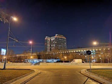 Ночью лучше снимать на основной модуль, для которого реализован и специальный ночной режим со склейкой нескольких кадров в один. Однако при длительной экспозиции тяжело исключить дрожание рук. Хорошей альтернативой будет съемка в традиционном режиме, потому что основной модуль, за счет своей светосильной оптики и значительного запаса по разрешению сенсора, позволяет получить очень неплохие ночные снимки освещенных объектов, а в сумерках вообще чувствует себя отлично.
