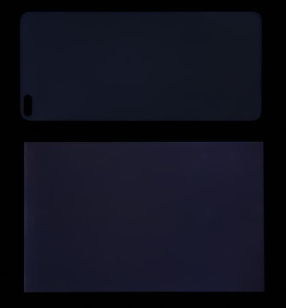 Экран у Honor View 30 Pro заметно темнее (яркость по фотографиям 105 против 116 у Nexus 7). Двоение отраженных объектов в экране Honor View 30 Pro очень слабое, это свидетельствует о том, что между слоями экрана (конкретнее между внешним стеклом и поверхностью ЖК-матрицы) нет воздушного промежутка (экран типа OGS — One Glass Solution). За счет меньшего числа границ (типа стекло/воздух) с сильно различающимися коэффициентами преломления такие экраны лучше смотрятся в условиях интенсивной внешней засветки, но вот их ремонт в случае потрескавшегося внешнего стекла обходится гораздо дороже, так как менять приходится экран целиком. На внешней поверхности экрана есть специальное олеофобное (жироотталкивающее) покрытие, которое по эффективности лучше, чем у Nexus 7, поэтому следы от пальцев удаляются существенно легче, а появляются с меньшей скоростью, чем в случае обычного стекла.