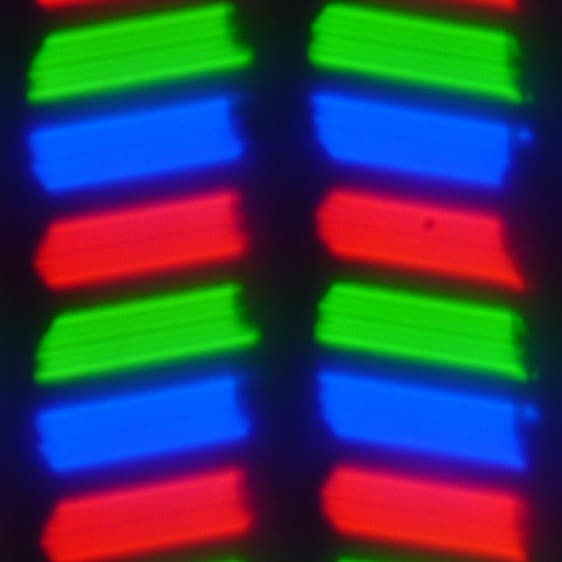 В данном смартфоне используется матрица типа IPS. Микрофотографии демонстрируют типичную для IPS структуру субпикселей: