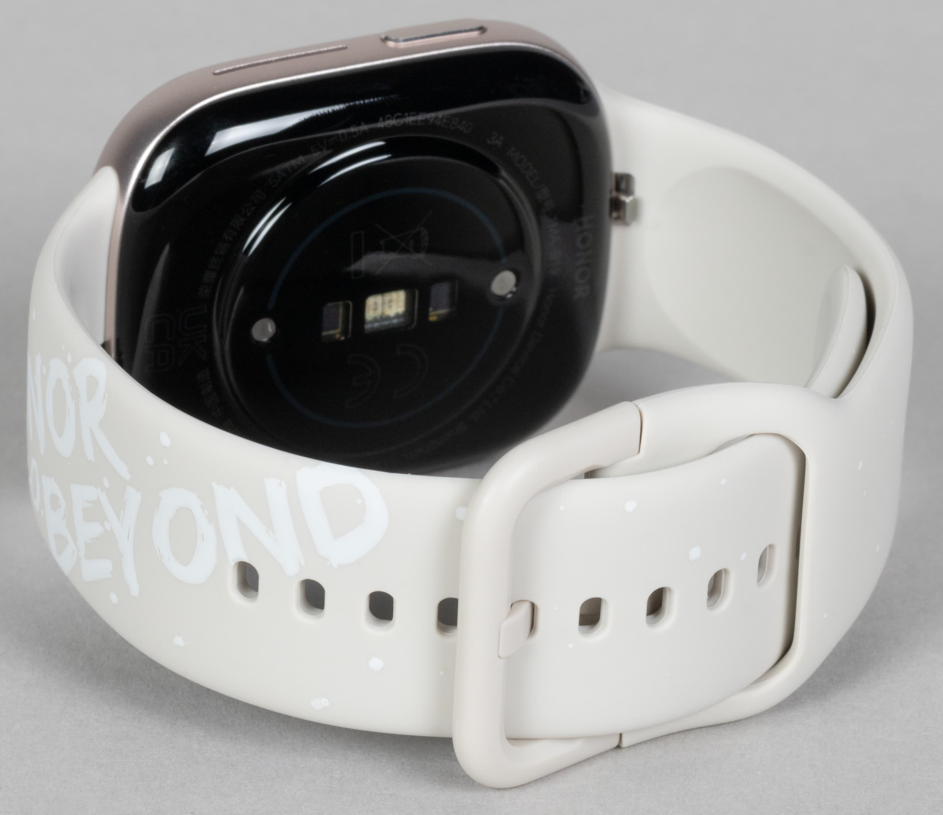 Его же проблема — в крупной надписи «Honor Go Beyond». Не каждый согласится носить на руке рекламу бренда. Но для тех, кто не согласится, есть черный вариант ремешка — на нем нет никаких надписей.
