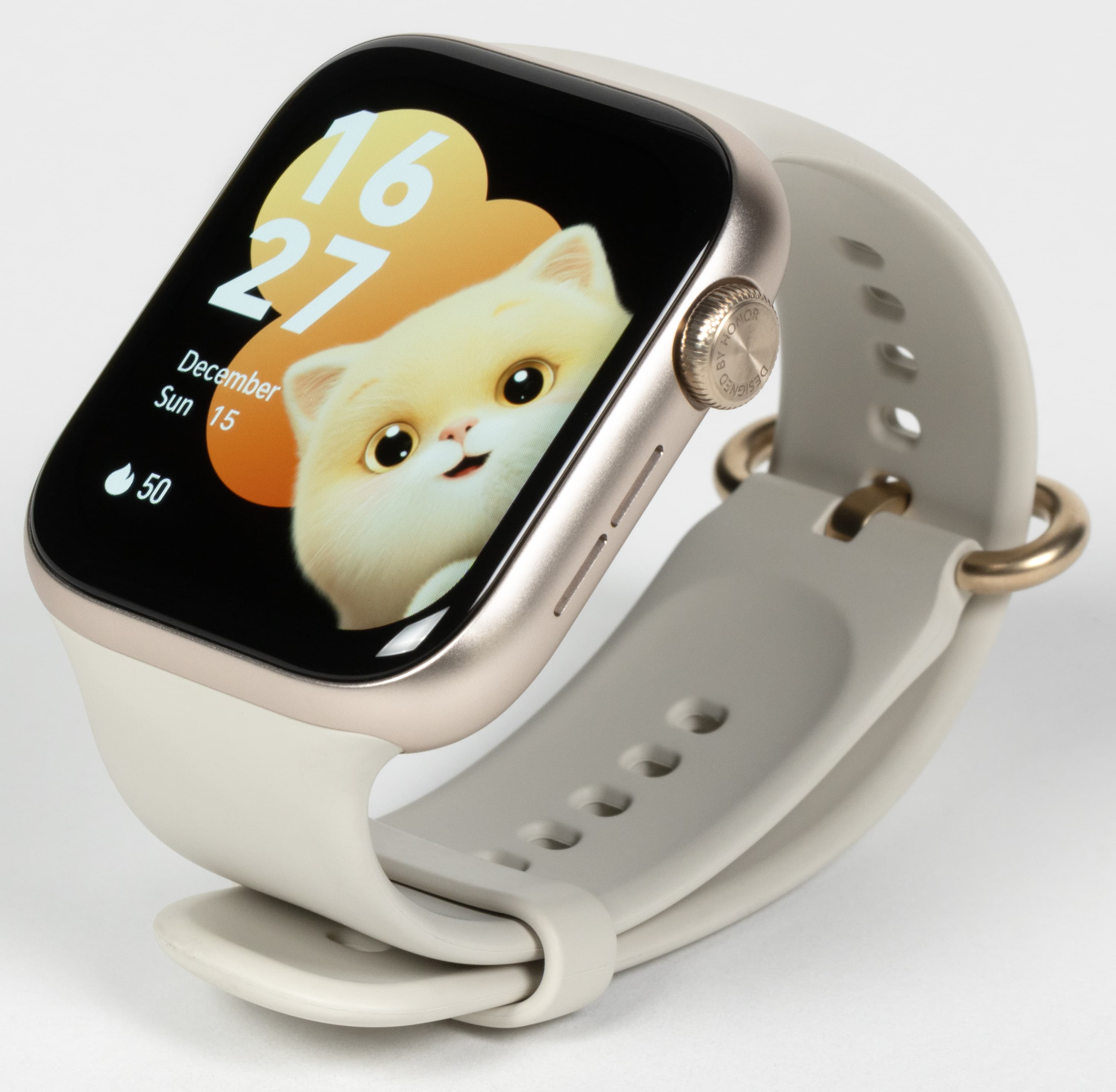 На смену обычной кнопке в Honor Watch 5 пришло колёсико. Оно позволяет прокручивать списки, настраивать громкость во время звонков и легко перемещаться по меню. Ход чёткий, приятный, и есть так тактильный отклик.
