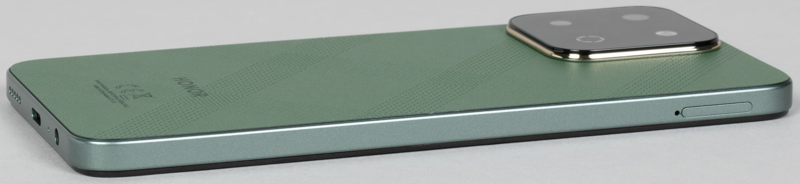 Смартфон Honor X7c представлен в нескольких цветовых решениях на выбор. Российские названия такие: «Лесной зеленый», «Полночный черный», «Лунный белый». От влаги и пыли корпус защищен по стандарту IP64. Первая цифра означает защиту от пыли, и с ней здесь всё хорошо, а вот цифра 4 означает лишь легкую защиту от брызг, погружать аппарат в воду не допускается. Смартфон получил прочный корпус, хорошо противостоящий внешним воздействиям.