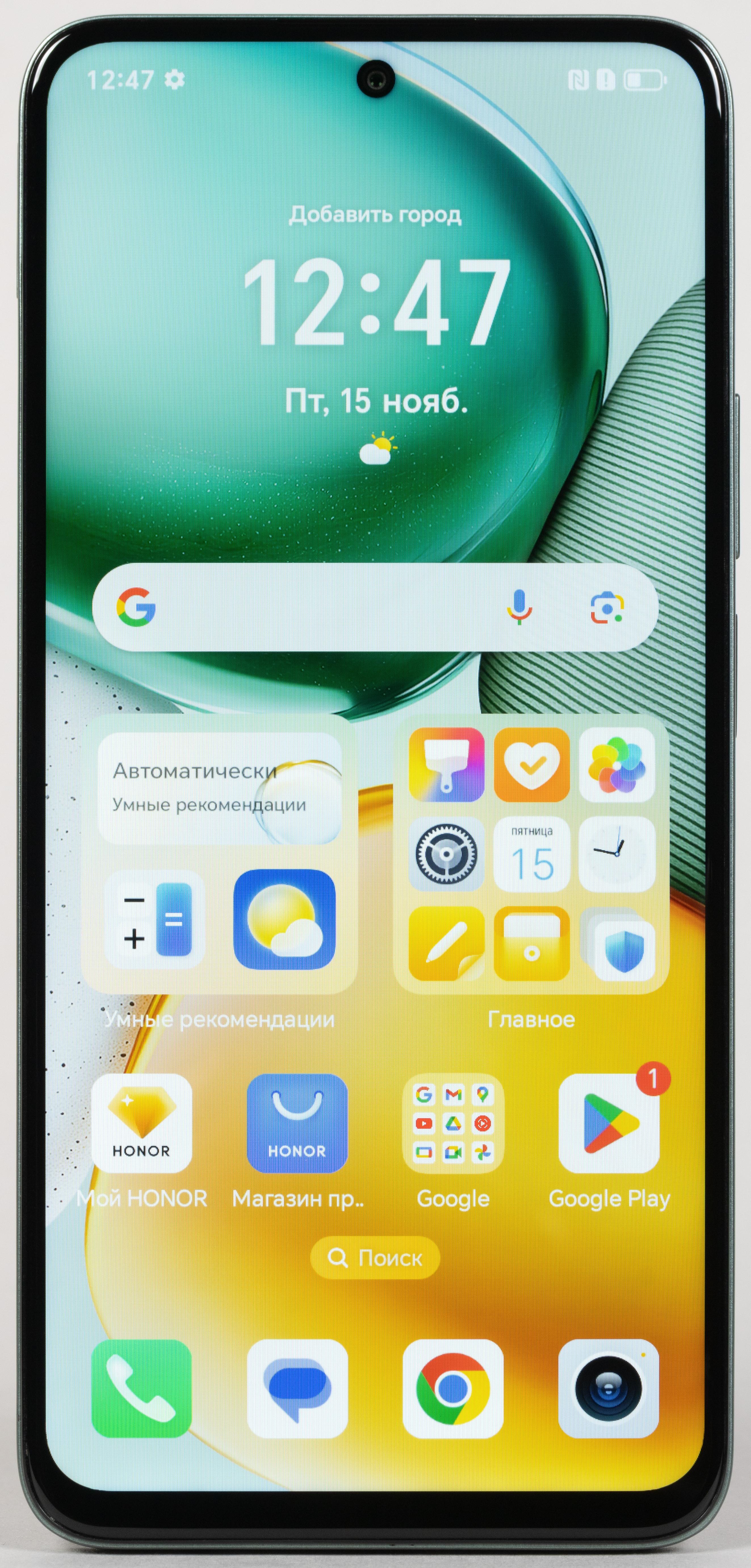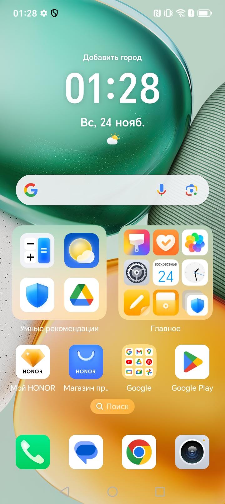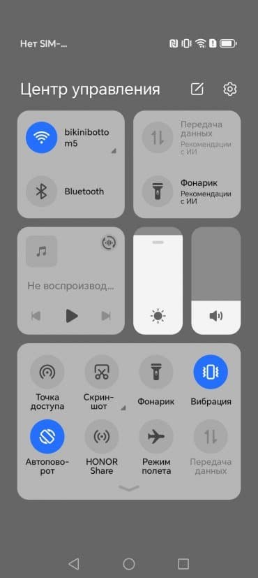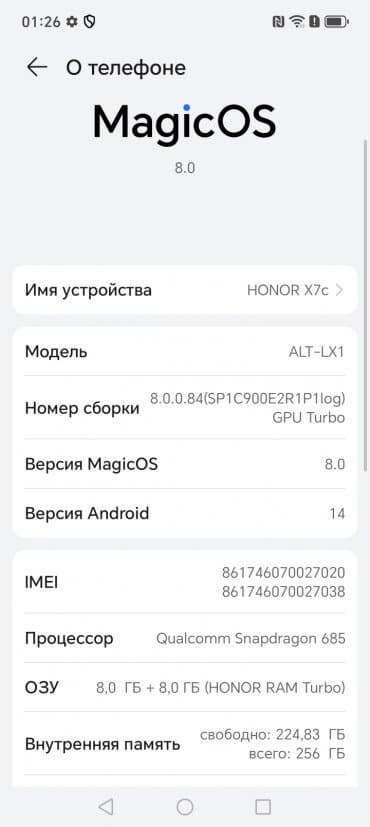 В качестве программной платформы в Honor X7c используется ОС Android 14 с собственной оболочкой MagicOS 8. По уверениям производителя, аппарат получит как минимум еще два крупных обновления системы, то есть дотянет до Android 16. Добротный интерфейс функционирует быстро, хорошо оптимизирован, лаконично организован. Оттягиваемая шторка здесь разделена на две части. Предустановленных ненужных приложений практически нет, что весьма похвально.
