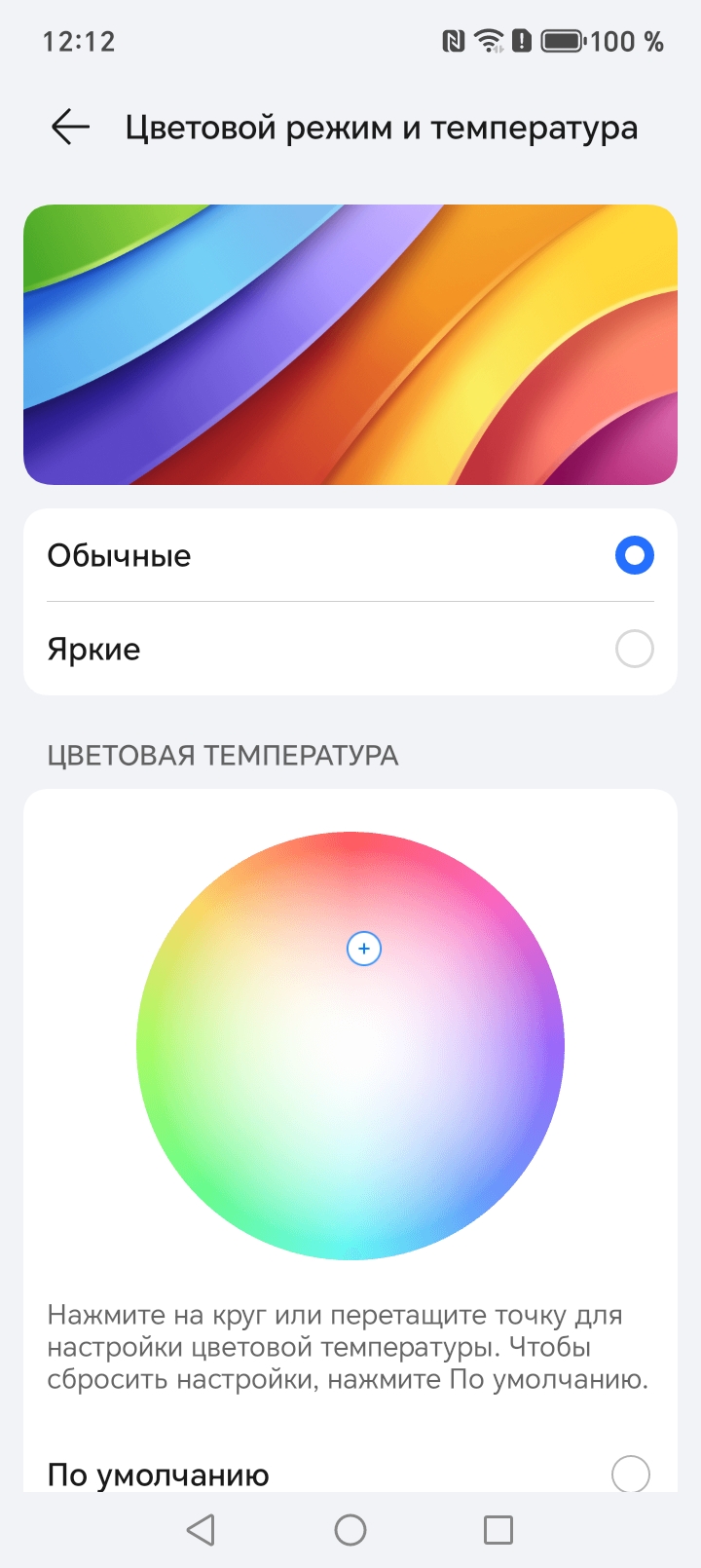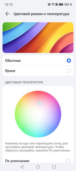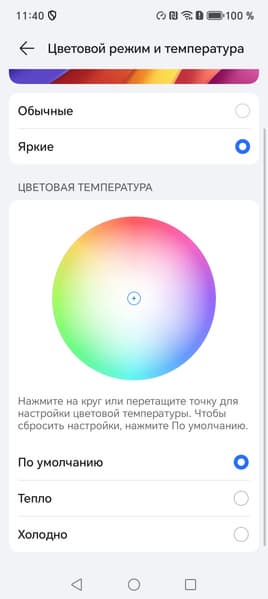 Фотография выше получена при активном профиле Обычные в настройках экрана, всего их два: