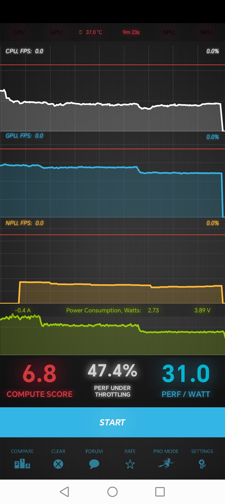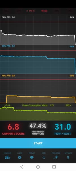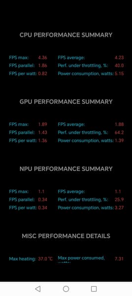 Тест на снижение производительности при нагреве мы проводим с помощью программы Burnout Benchmark, которая позволяет нагружать CPU, GPU и NPU: