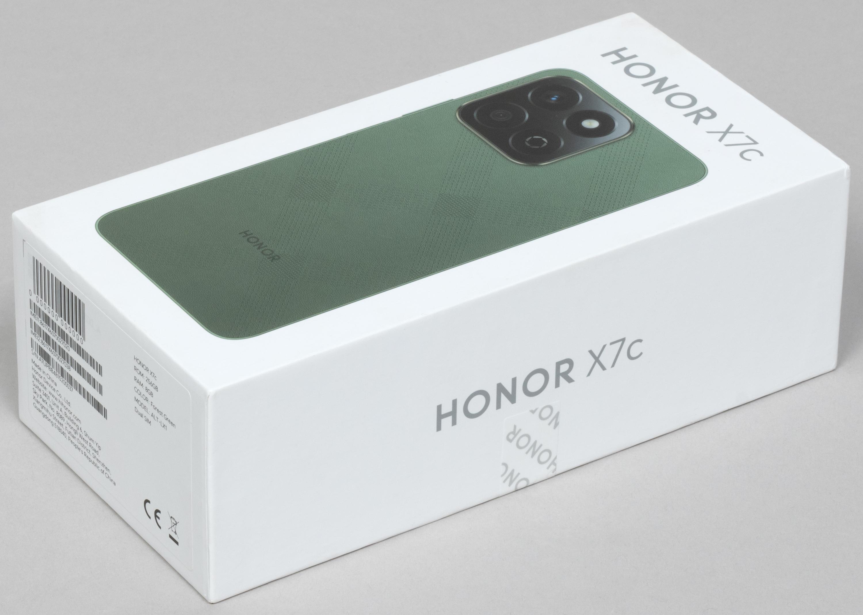 Смартфон Honor X7c поставляется в картонной коробке с лаконичным оформлением.