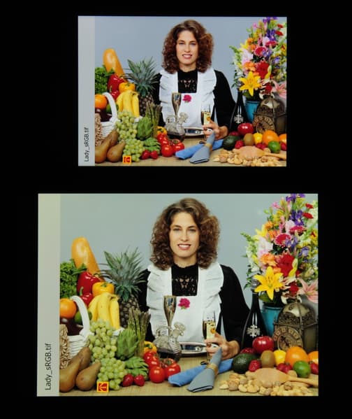 Отметим, что на экранах с широким цветовым охватом (без соответствующей коррекции) цвета́ обычных изображений, оптимизированных для устройств sRGB, выглядят неестественно насыщенными. Отсюда и рекомендация: в большинстве случаев смотреть кино, фотографии и все естественное лучше при выборе профиля Обычные.