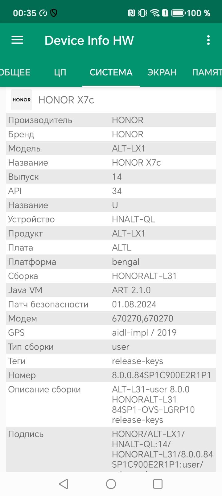 Основные характеристики Honor X7c (модель ALT-LX1)